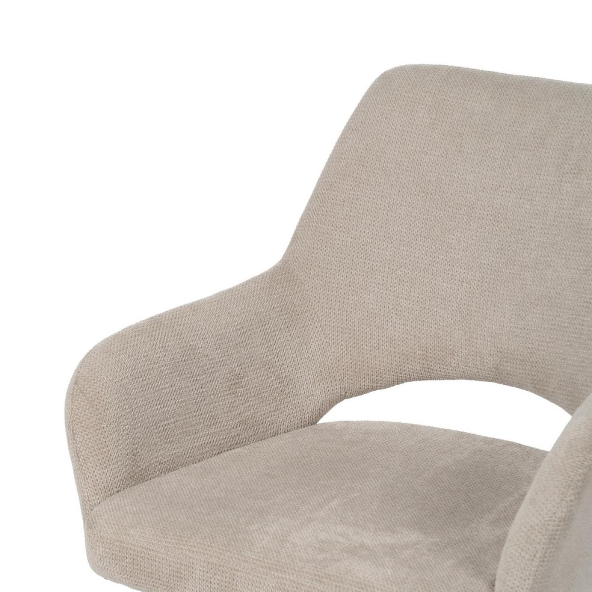SILLA BEIGE GIRATORIO TEJIDO-METAL 59,50 X 62 X 83,50 CM SILLA GIRATORIA 180 grados. MATERIAL PATAS: METAL TEJIDO: POLIÉSTER Altura del asiento: 48cm. Altura de las patas:39cm Altura del respaldo:40cm Altura de los brazos desde el asiento:17cm Medidas asiento:45x47x48cm. Distancia entre las patas:44cm Relleno: Espuma. Gramaje: 32g/m2 Densidad del respaldo:24kgs/m3 Densidad del asiento:28kgs/m3 Peso máximo soportado: 100kgs. Las patas requieren montaje. No apilable. Cumple con la normativa UNE-EN 12520:2016