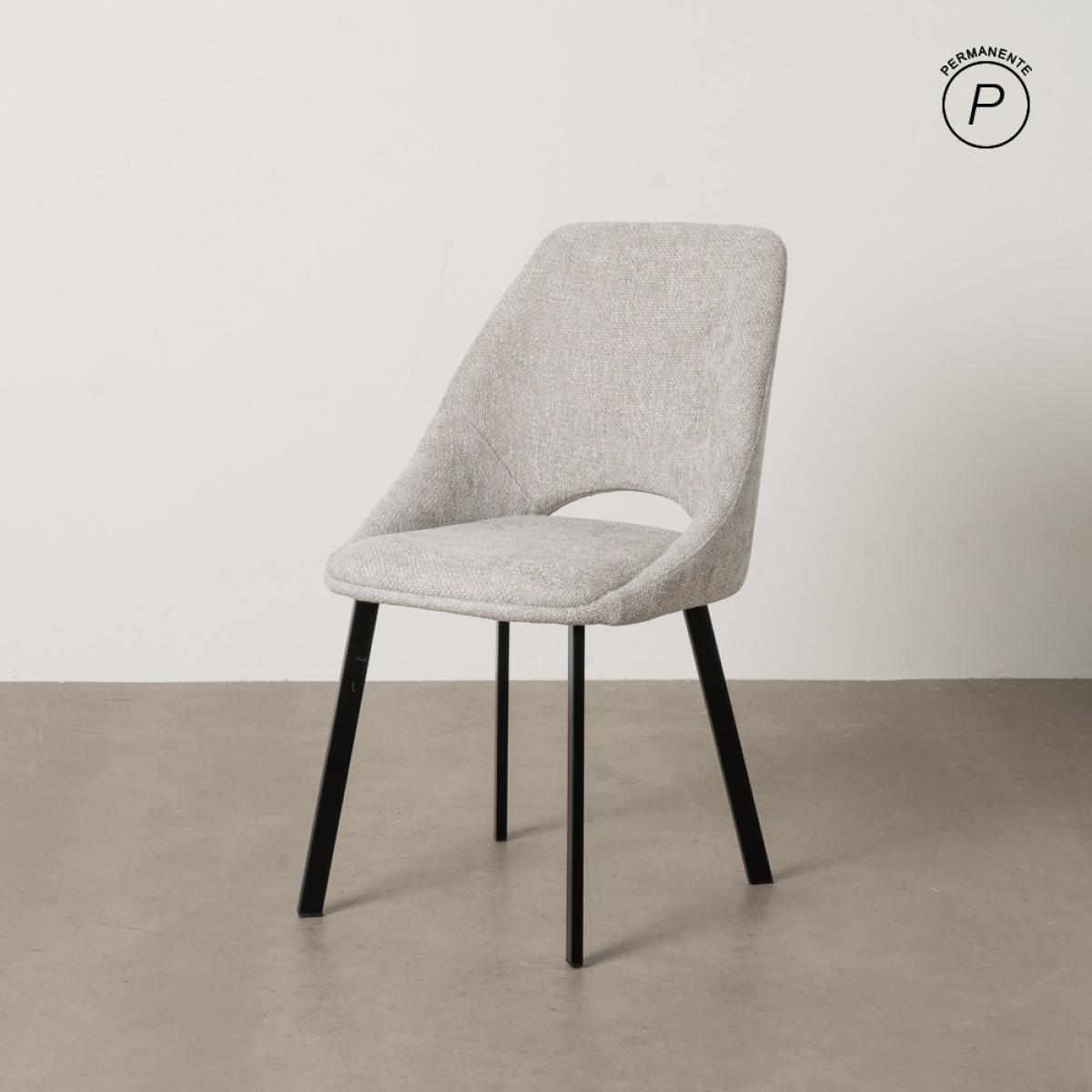 SILLA GRIS TEJIDO-METAL SALÓN 48 X 61 X 85 CM Material: tejido (100% poliéster), metal. Relleno: foam, densidad 24kg/m3. Altura asiento: 48cm. Ancho asiento: 39cm. Profundidad asiento: 46cm. Altura respaldo: 39cm. Peso máximo soportado: 120kgs. Cumple la normativa EN16139. No apilable.