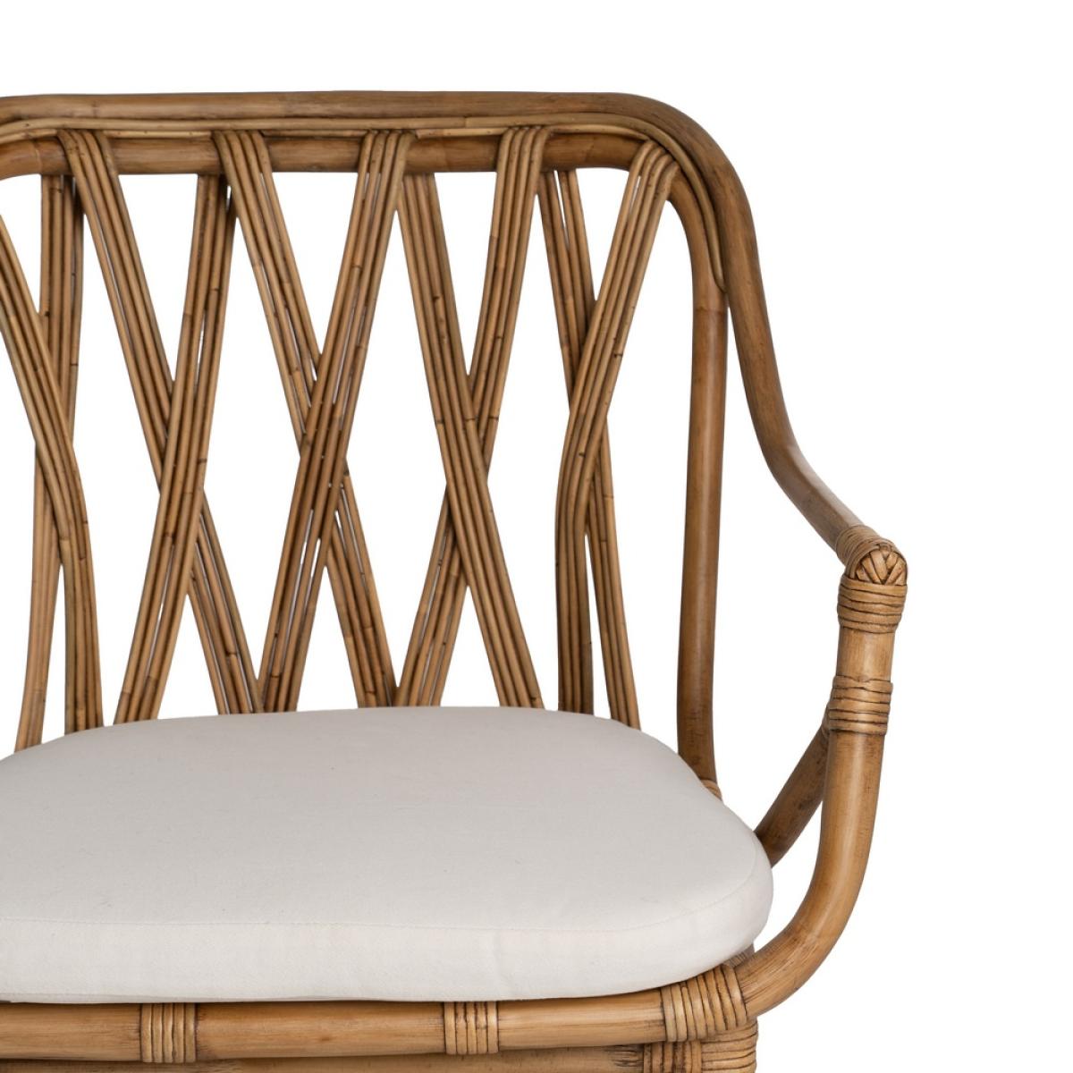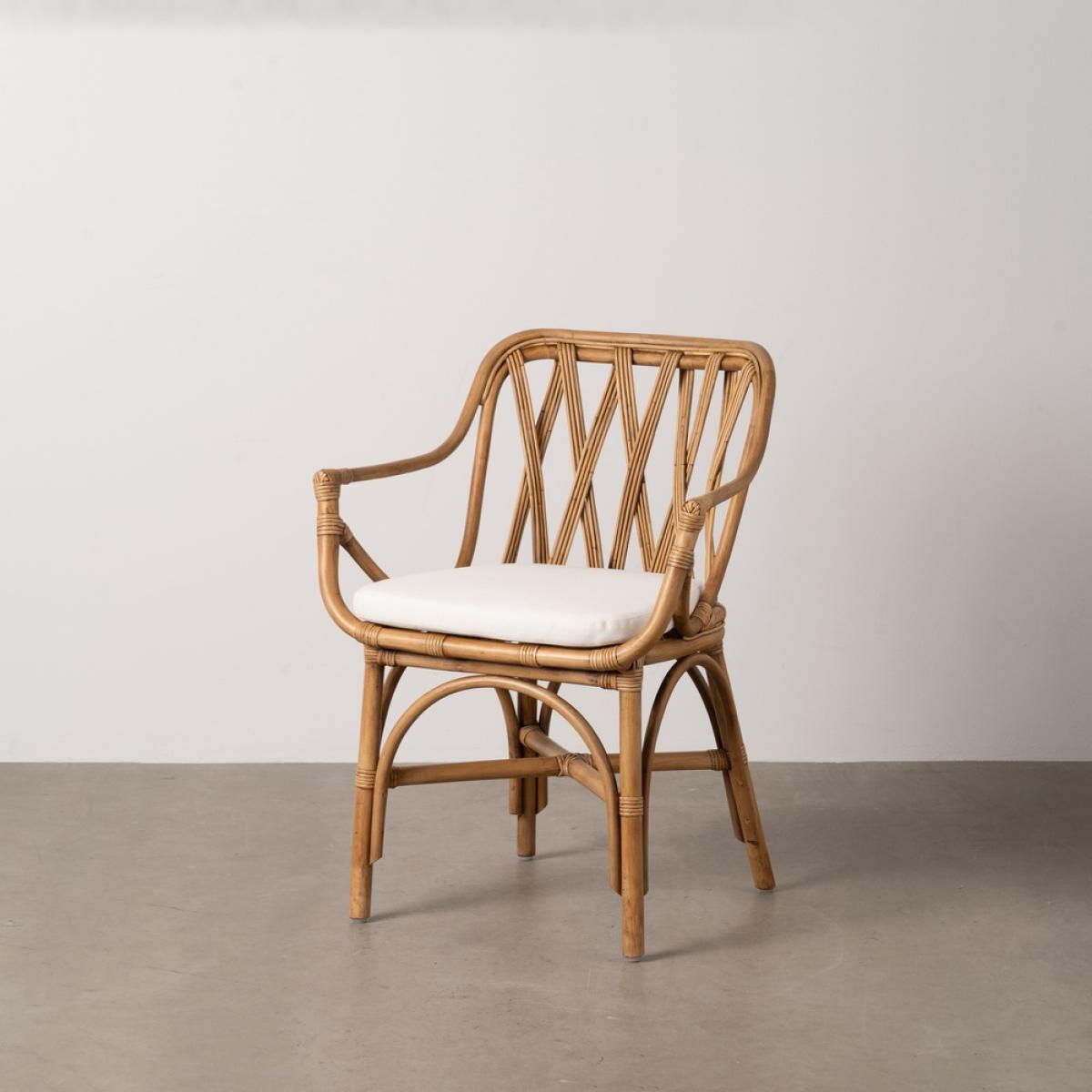SILLÓN NATURAL RATÁN DECORACIÓN 62 X 55 X 83 CM Material: Ratán. Altura asiento: 49cm. Ancho asiento: 46cm. Profundidad asiento: 45cm. Altura respaldo: 37cm. Altura reposabrazos: 17cm. Altura patas: 20cm. Cojín desenfundable.