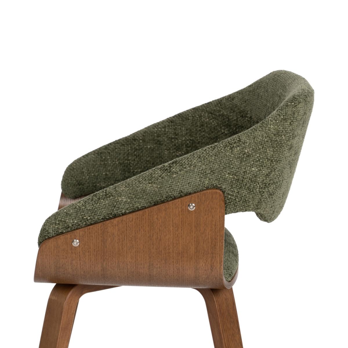 SILLA VERDE-MARRÓN TEJIDO-MADERA 51 X 55 X 75 CM Material: 100% poliéster-madera de haya Relleno: foam Densidad: 30kgr./m2 Altura asiento: 45cm. Ancho asiento: 44cm. Altura reposabrazos desde suelo: 55 a 70cm. Altura patas: 42cm. Para montar. Cumple normativa: EN16139:2013