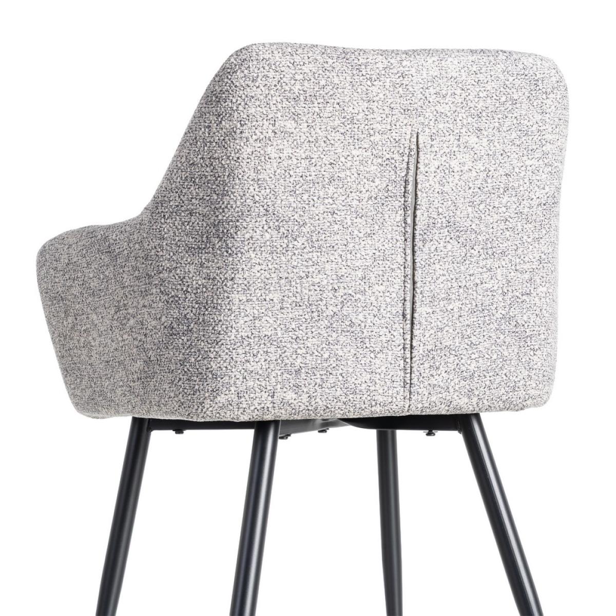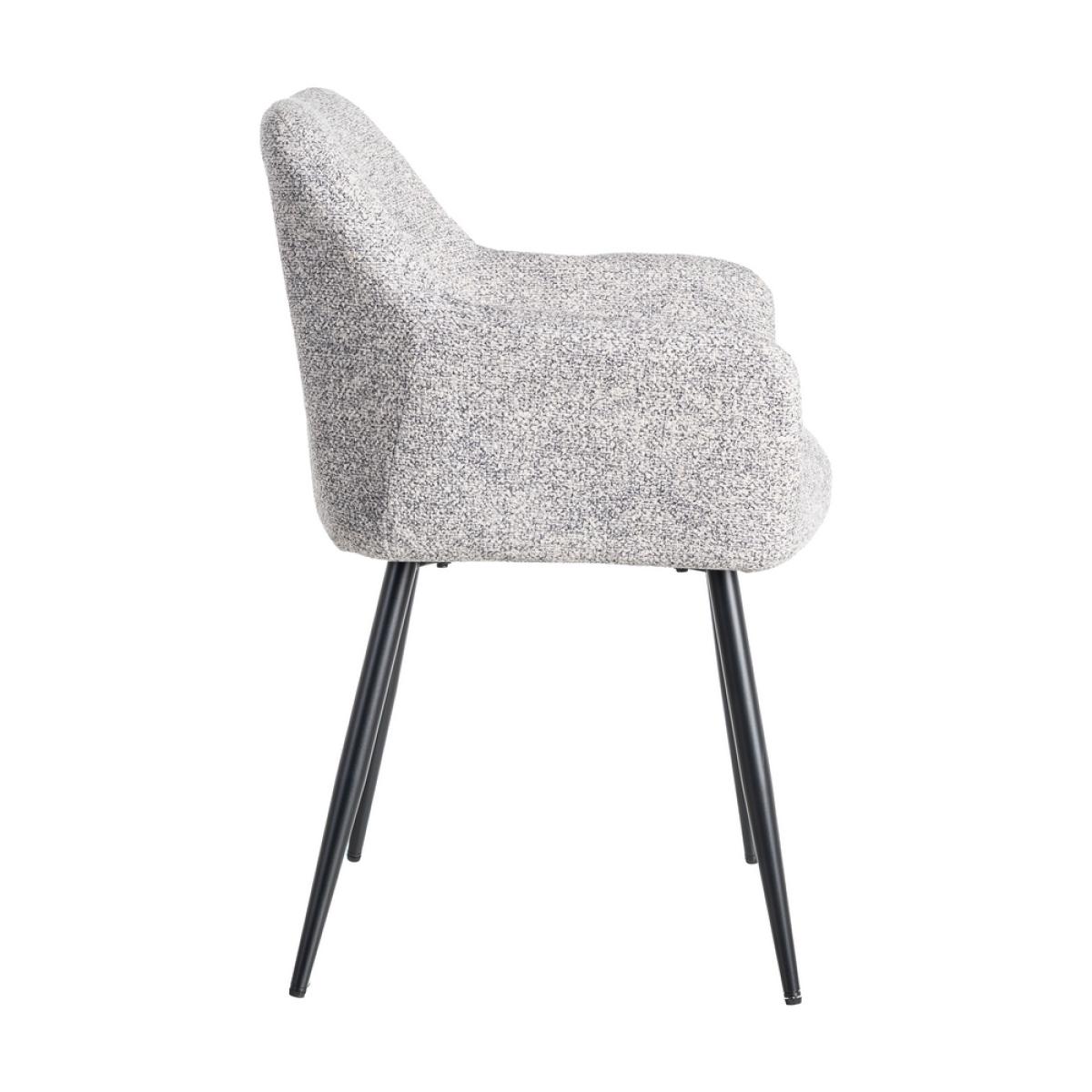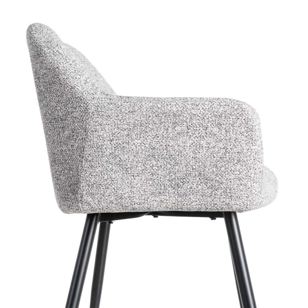 SILLA JASPEADO GRIS-BLANCO TEJIDO-METAL 59 X 54 X 81 CM Material: tejido - metal Tejido: 100% poliéster Patas: hierro Altura asiento: 50cm. Altura respaldo: 32cm. Profundo asiento: 42.5cm. Altura reposabrazos desde el suelo: 65cm. Patas para montar. Cumple normativa EN13139:2013 No apilable.