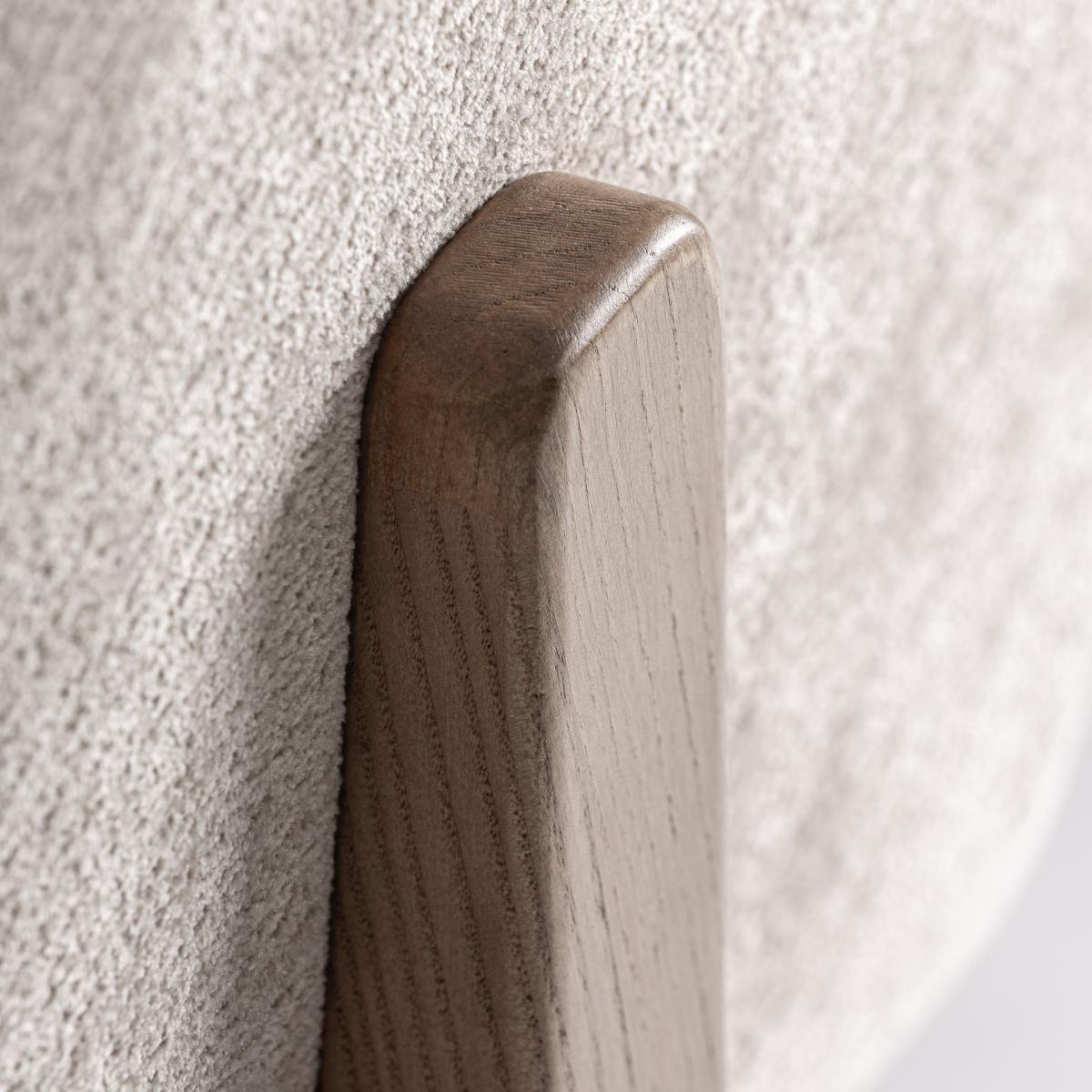 Silla, fabricado en poliéster en color beige, combinado con madera de fresno en color marrón.