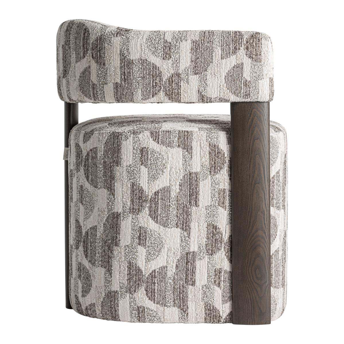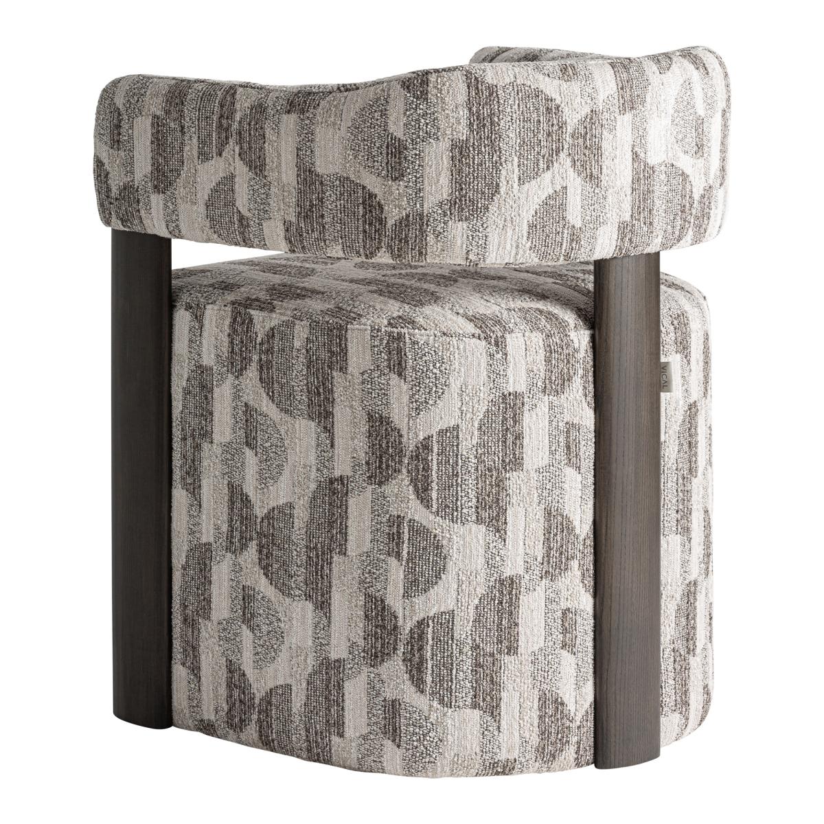 Silla Najac de estilo contemporáneo, fabricado en poliéster en color gris con acabado estampado, combinado con madera de fresno en color marrón y espuma.