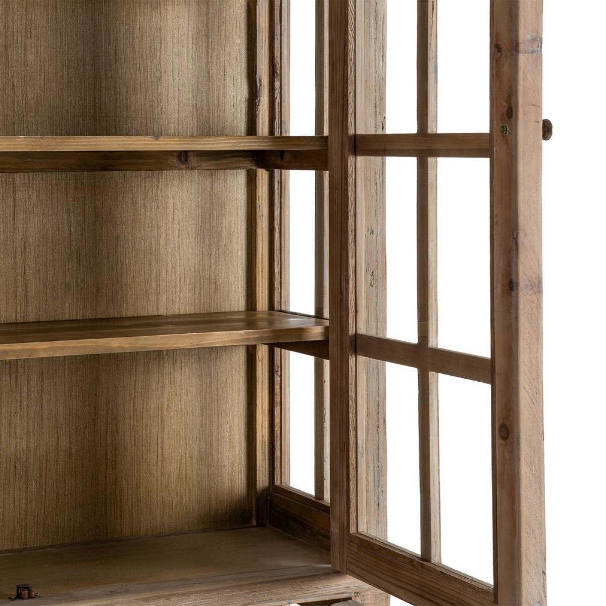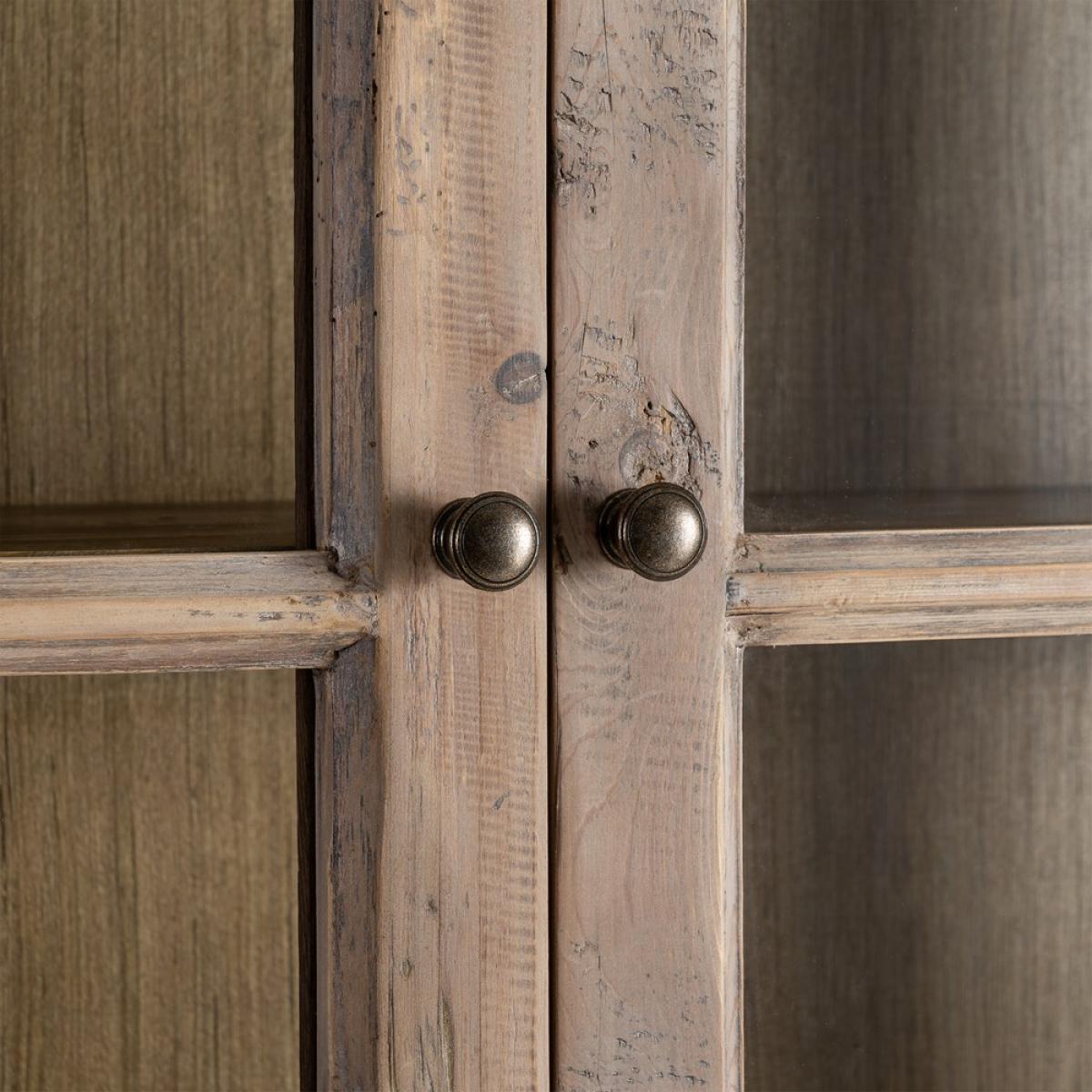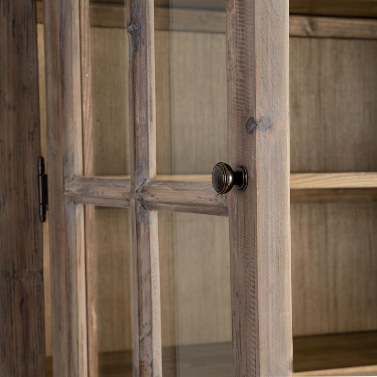 VITRINA MADERA DE PINO SALÓN 120 X 40 X 195 CM Material: madera de pino reciclada, cristal. Puertas superiores: 48x115cm. Puertas inferiores: 48x60,5cm.
