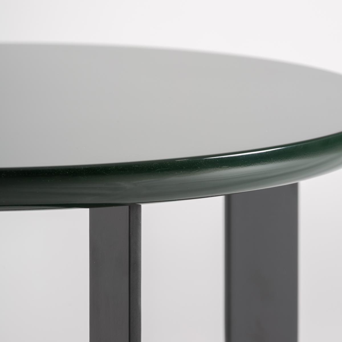 Mesa auxiliar fabricado en madera dm en color verde con acabado lacado combinado con hierro en color negro.