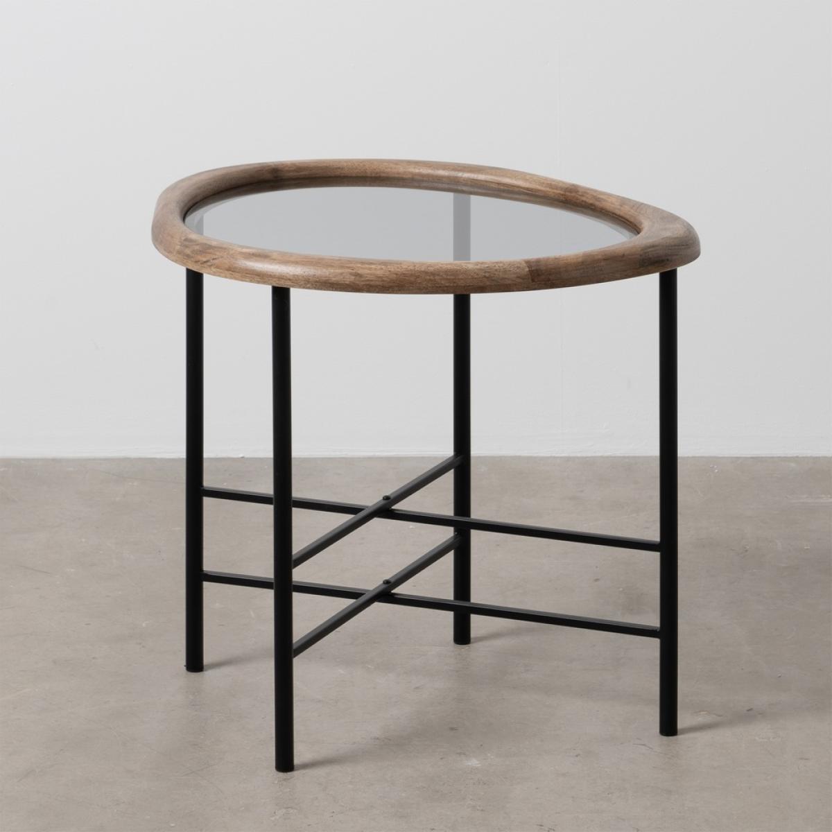 MESITA NATURAL-NEGRO MADERA-METAL 61 X 50 X 53 CM Material: madera de caucho - hierro - cristal. Patas para montar.