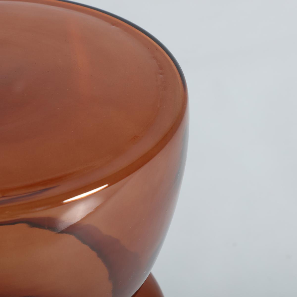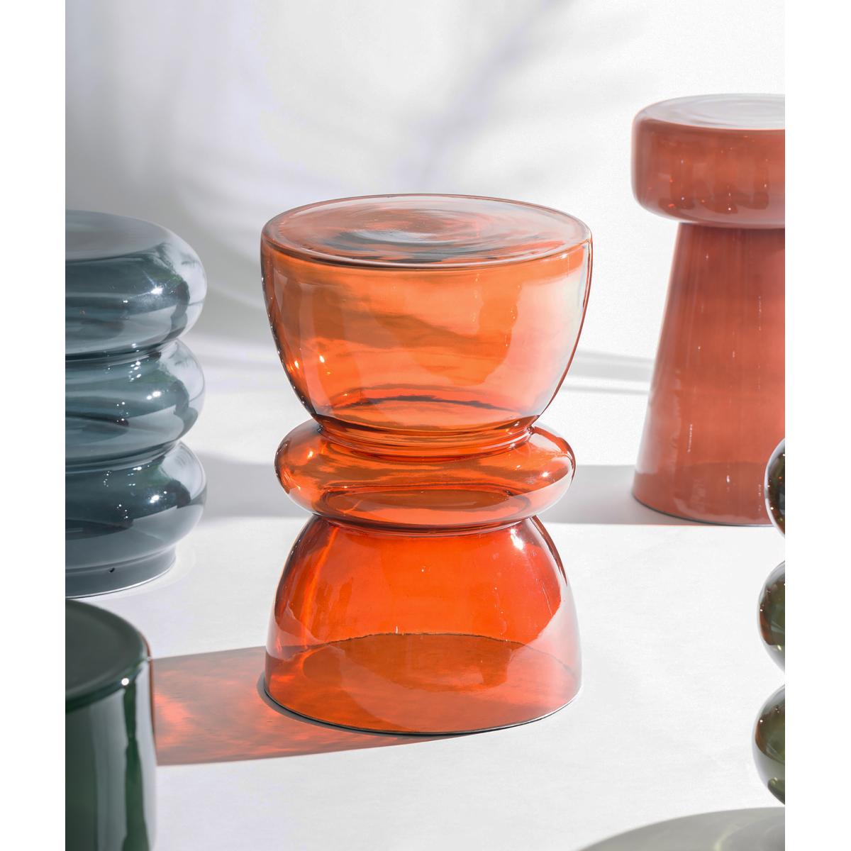 Mesa auxiliar Rustrel de estilo contemporáneo, fabricado en vidrio en color naranja con acabado traslúcido.