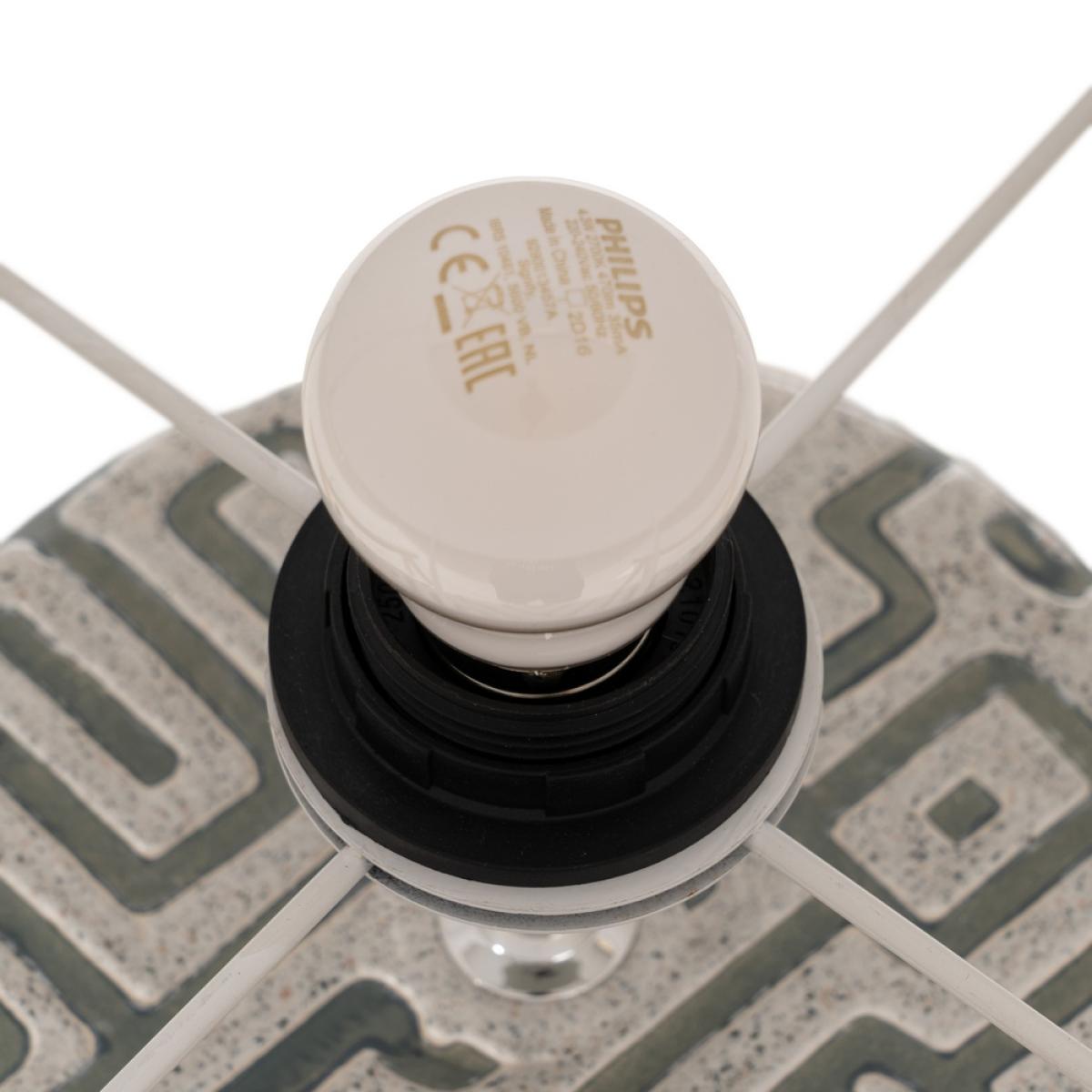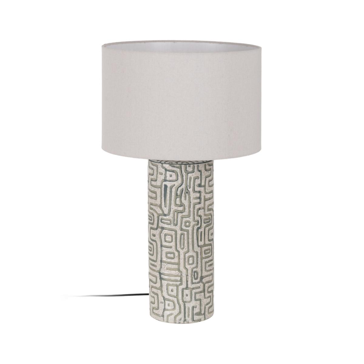 LÁMPARA MESA BLANCO-GRIS CERÁMICA 42 X 42 X 73 CM Base de cerámica, medidas 17x17x43cm. Pantalla de tejido (lino), medidas 52x42x27cm. Voltaje: 220V. Casquillo: E27. Bombillas: 1*60W máx (no incluida). Longitud cable: 120cm.