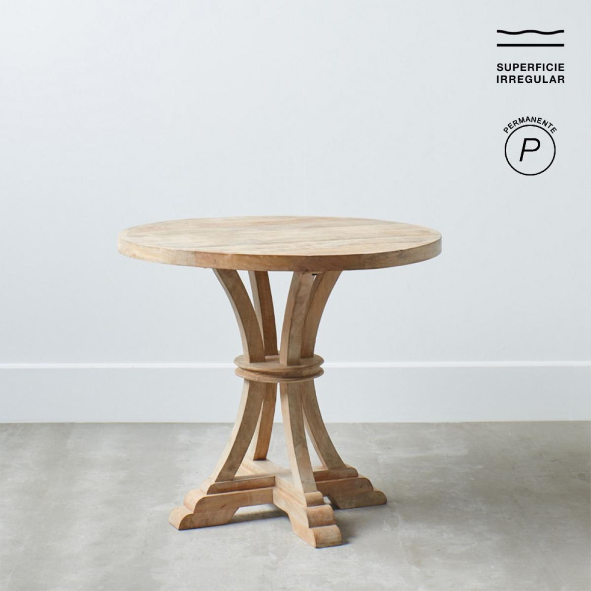 MESA COMEDOR NATURAL MADERA DE MANGO 85 X 85 X 76 CM Material: madera de mango. Altura pata: 72,5cm. La superficie del sobre puede no ser totalmente lisa debido a su fabricación manual con listones de madera maciza.