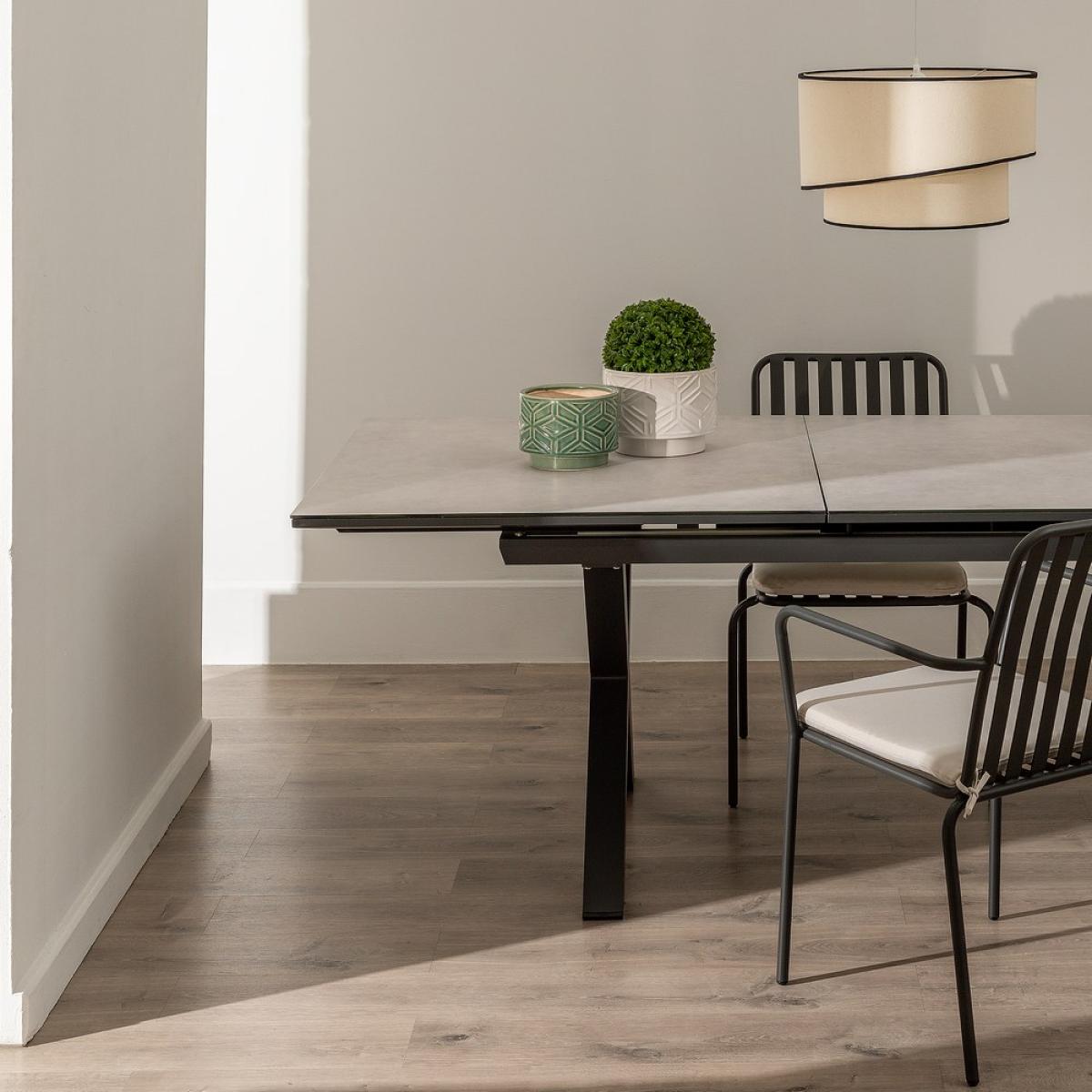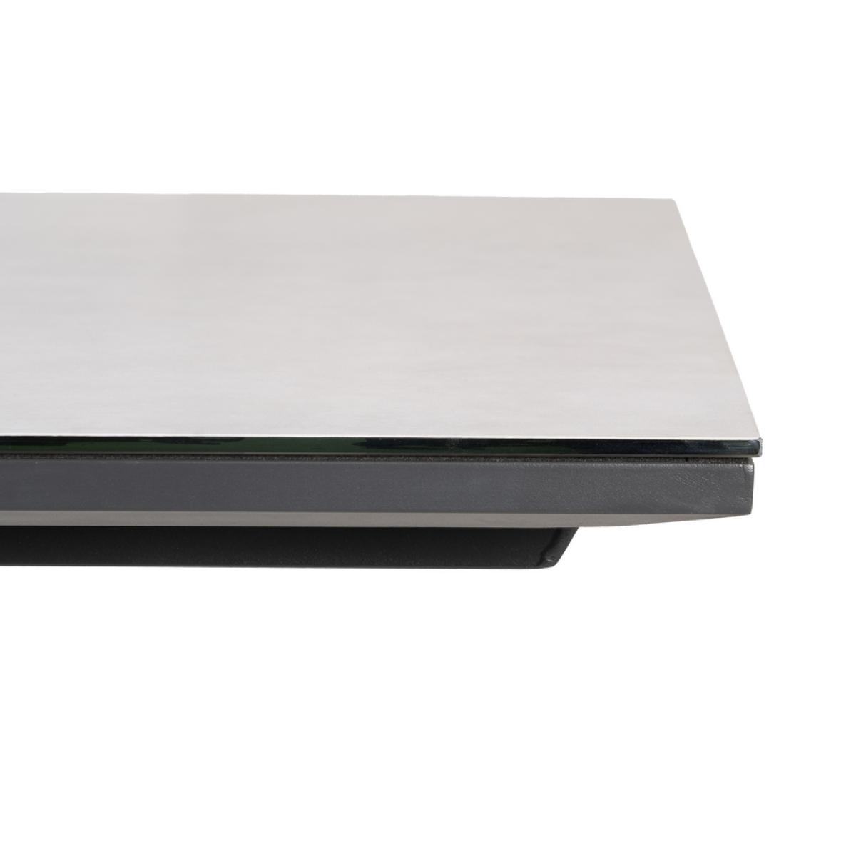 MESA COMEDOR EXTENSIBLE BLANCO 180 X 100 X 77 CM Mesa extensible, de 180cm a 240cm (+60cm). Material: cristal con cerámica, patas de aluminio.