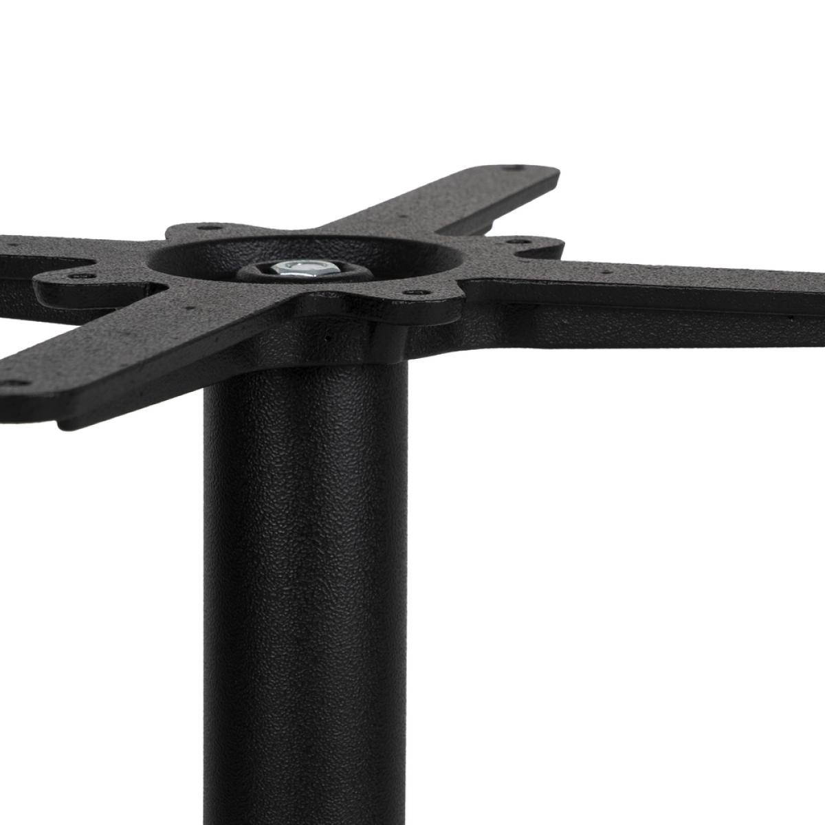 PATAS PARA MESA NEGRO HIERRO SALÓN 62 X 62 X 72 CM Material: hierro fundido. Soporte tablero: 45x45cm. Diámetro tubo: 6cm. Base: 62x62cm. Apto para tableros cuadrados hasta 80x80cm y tableros redondos hasta diámetro 90cm.