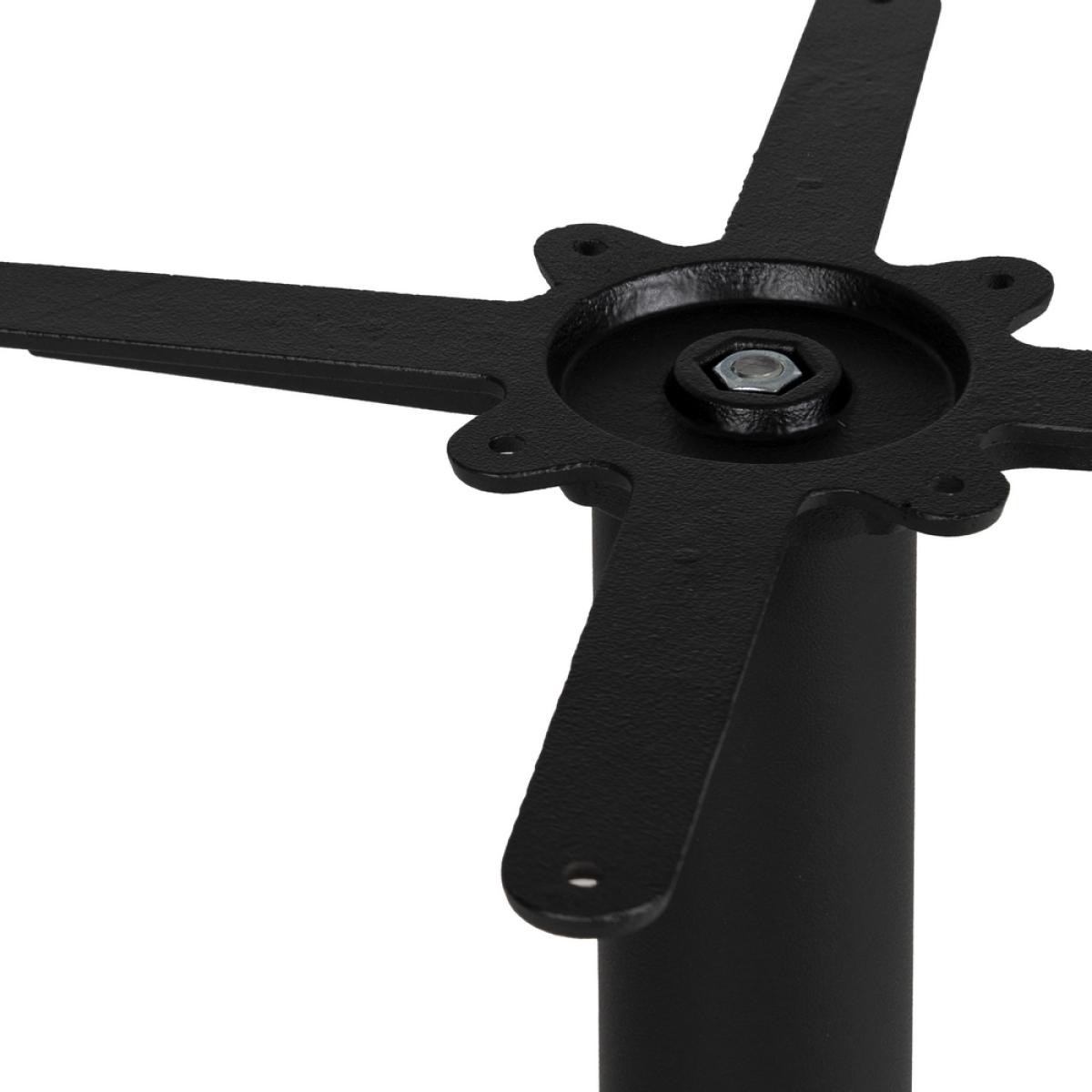 PATAS PARA MESA NEGRO HIERRO SALÓN 42 X 42 X 72 CM Material: hierro fundido. Soporte tablero: 45x45cm. Diámetro tubo: 7,6cm. Base: 42x42cm. Apto para tableros cuadrados hasta 70x70cm y tableros redondos hasta diámetro 80cm.