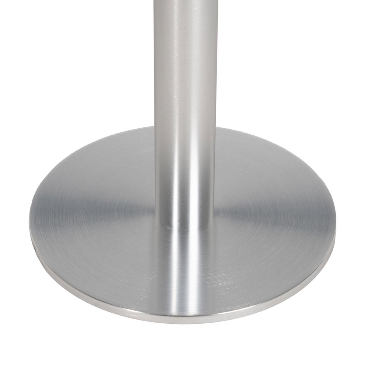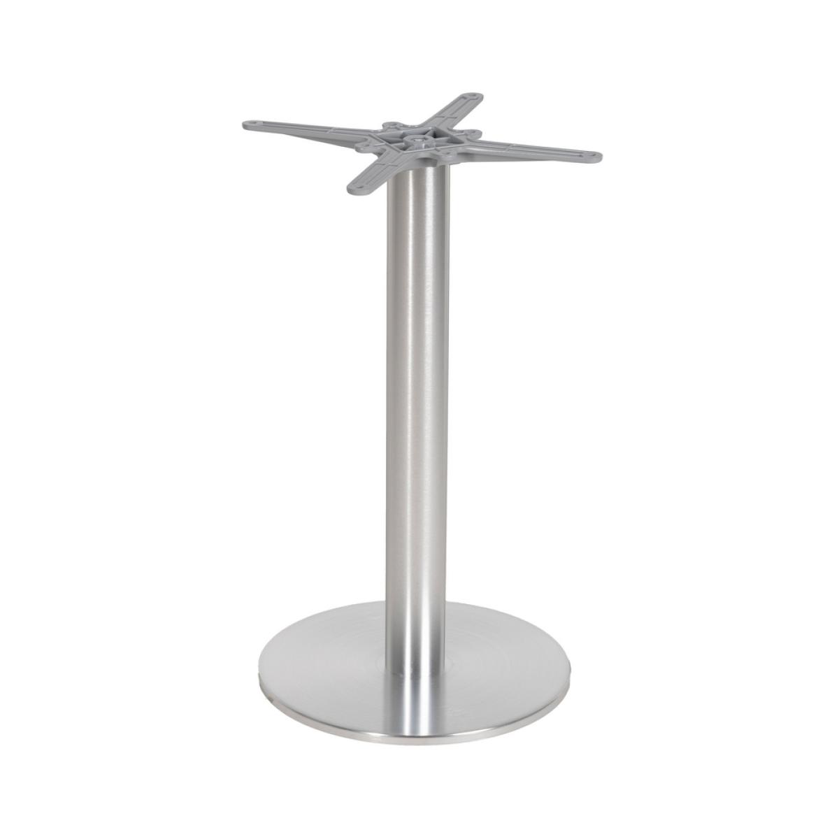 PATAS PARA MESA CROMO ALUMINIO SALÓN 45 X 45 X 72 CM Material: alumino. Soporte tablero: 45x45cm. Diámetro tubo: 7,6cm. Diámetro base: 40cm. Apto para tableros cuadrados hasta 60x60cm y tableros redondos hasta diámetro 70cm. Apto para uso exterior.