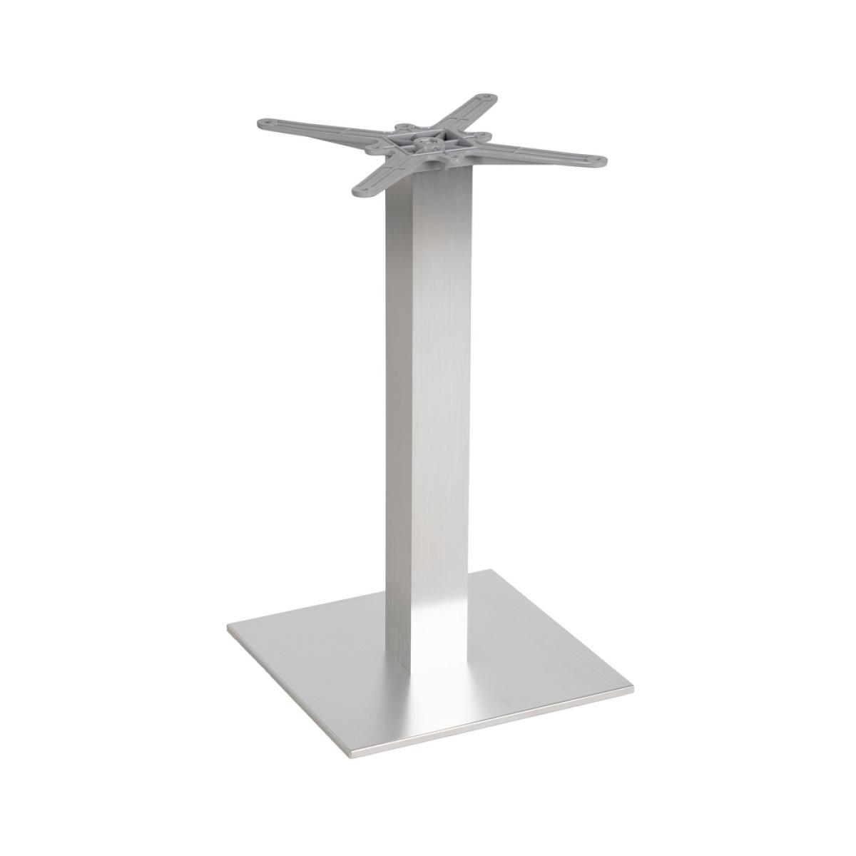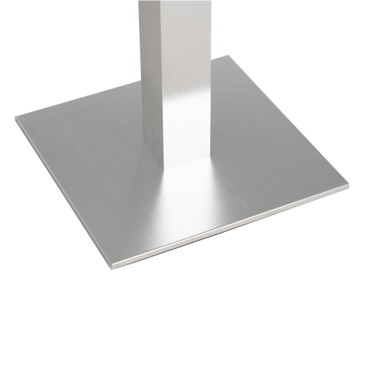 PATAS PARA MESA CROMO ALUMINIO SALÓN 45 X 45 X 72 CM Material: alumino. Soporte tablero: 45x45cm. Tubo: 8x8cm. Base: 40x40cm. Apto para tableros cuadrados hasta 70x70cm y tableros redondos hasta diámetro 80cm. Apto para uso exterior.