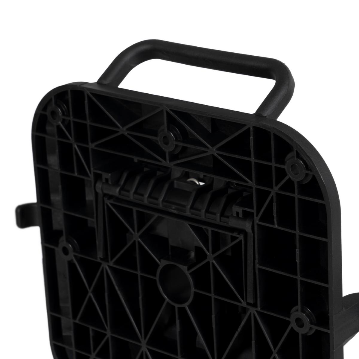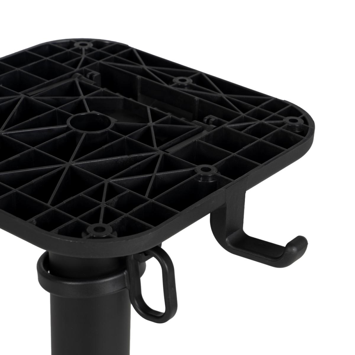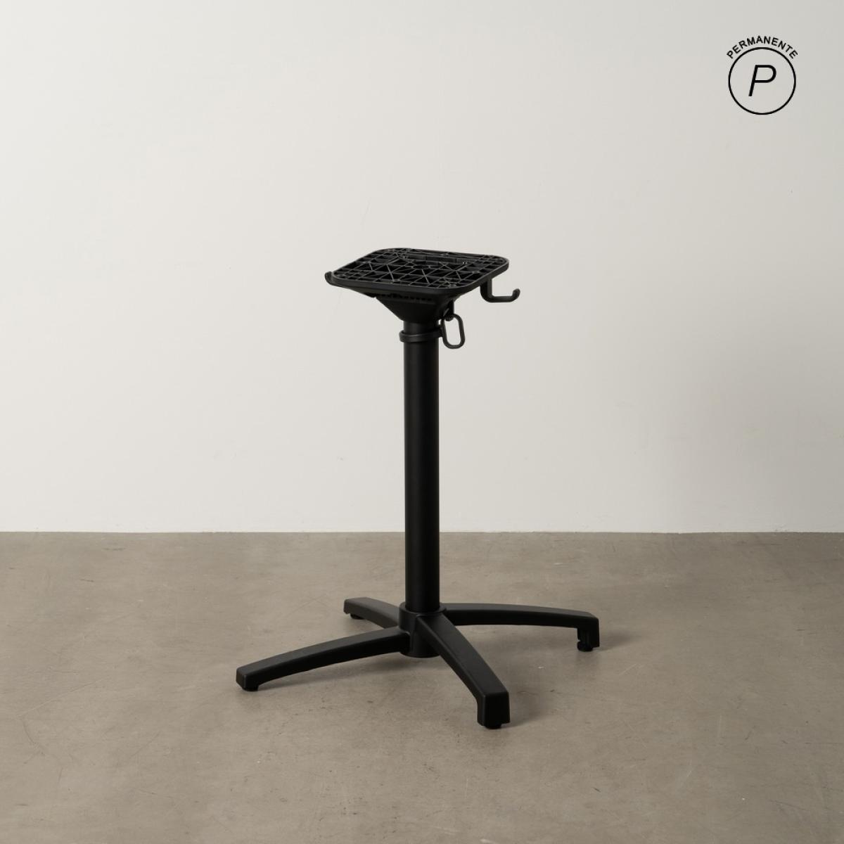 PATAS PARA MESA PLEGABLE NEGRO ALUMINIO 67 X 67 X 72 CM Material: aluminio. Soporte tablero: 25x25cm. Diámetro tubo: 6cm. Base: 67x67cm. Plegable. Incluye colgador para bolso. Apto para tableros cuadrados hasta 80x80cm y tableros redondos hasta diámetro 90cm. No apto para sobre muy pesados. Apto para uso exterior.
