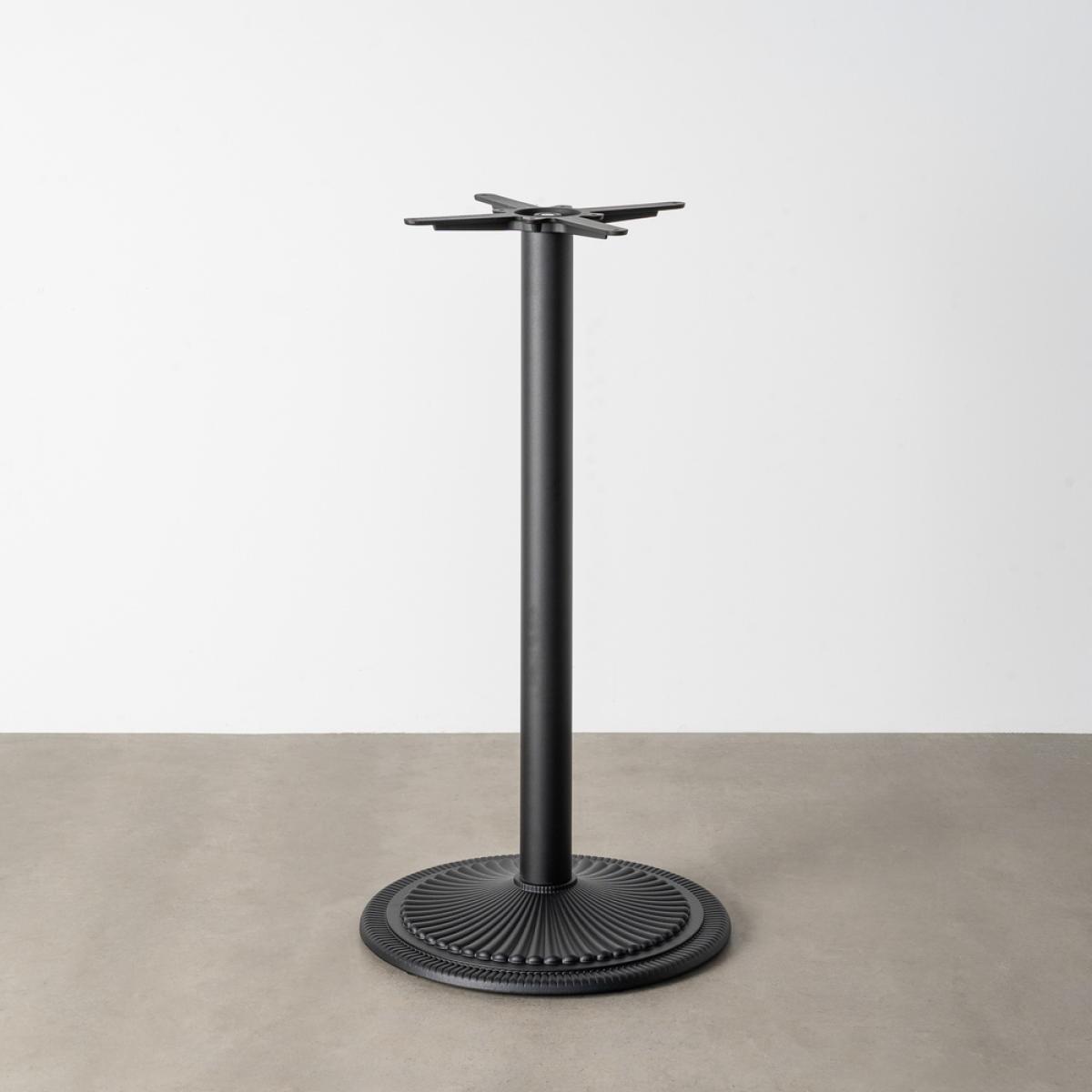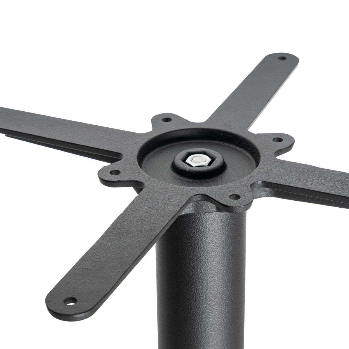 PATAS PARA MESA NEGRO HIERRO 55 X 55 X 108 CM Material: hierro fundido. Soporte tablero: 45x45cm. Diámetro tubo: 7,6cm. Diámetro base: 55cm. Apto para tableros cuadrados hasta 80x80cm y tableros redondos hasta diámetro 90cm.