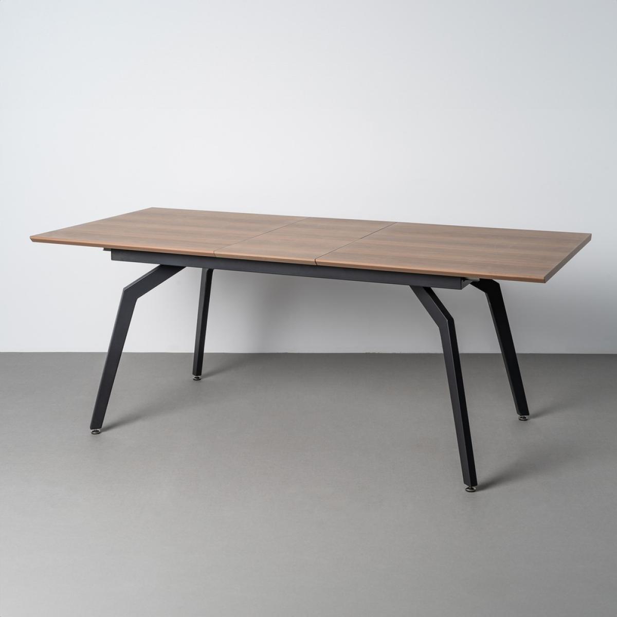 MESA EXTENSIBLE MARRÓN DM-METAL SALÓN 160 X 90 X 76 CM Material: Tablero de DM con acabado en melamina, pata y estructura de hierro. Mesa extensible de 160cm a 200cm (+40cm). Grosor tablero: 3cm. Precisa montaje.