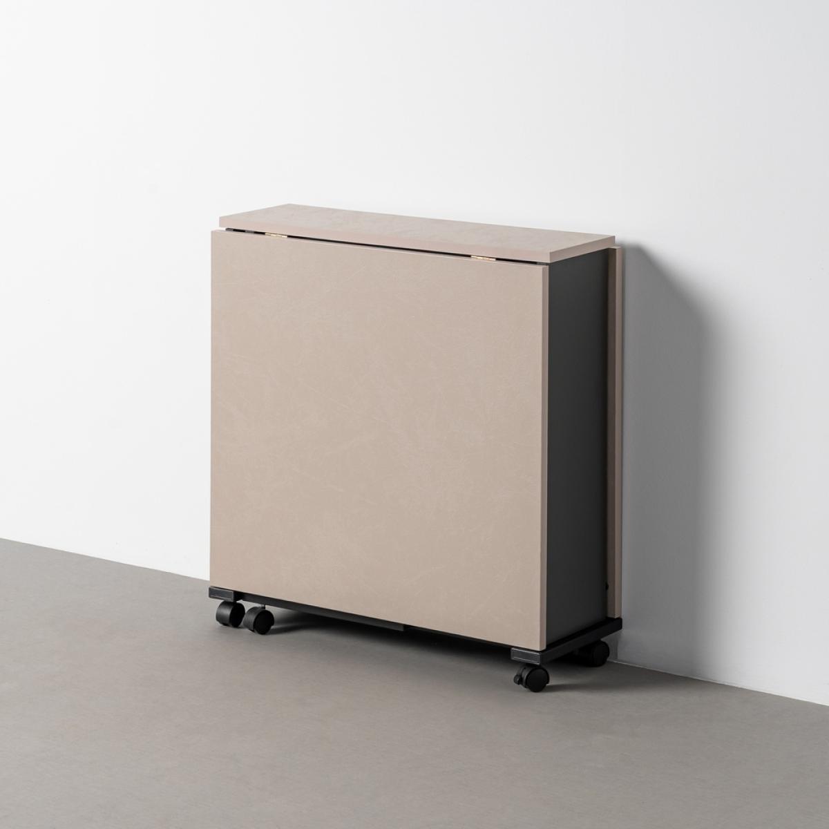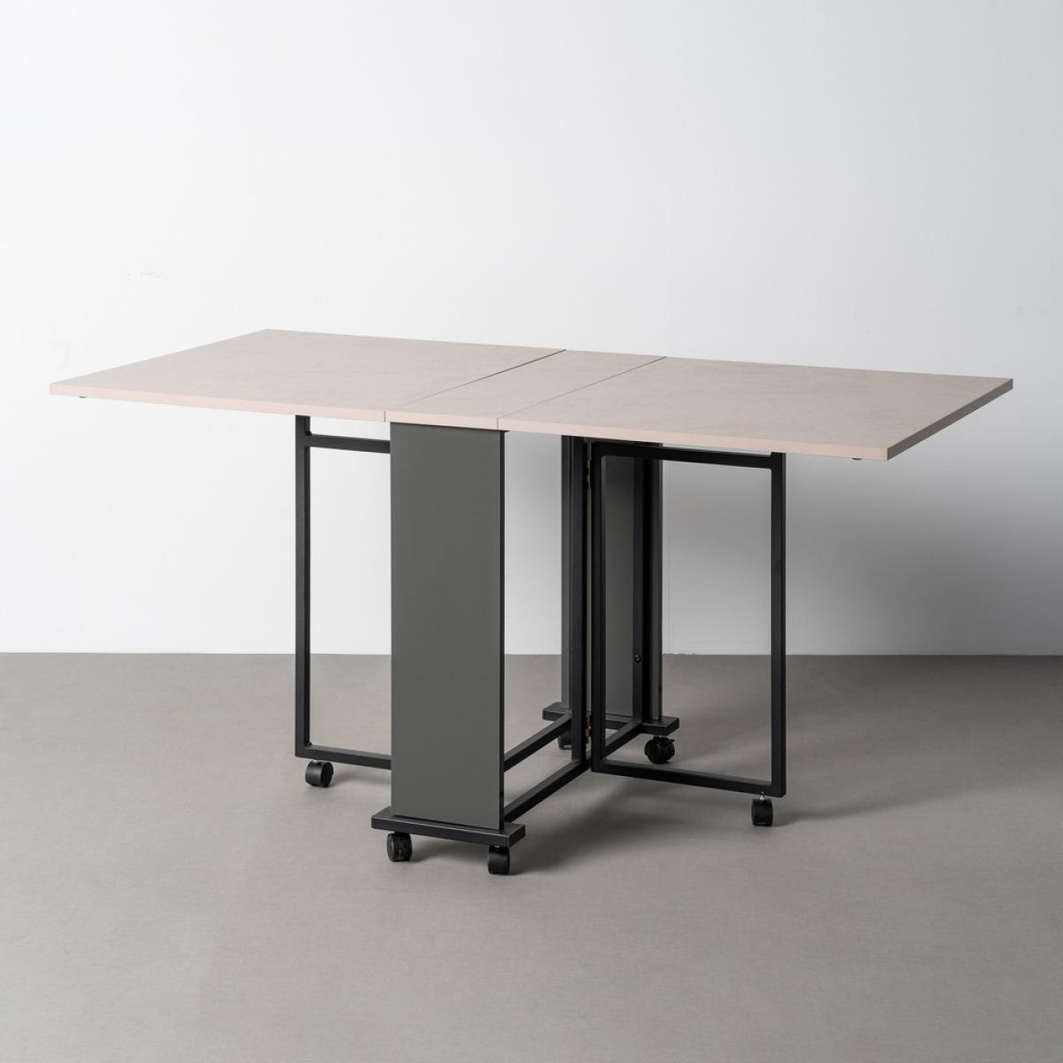 MESA PLEGABLE PLEGABLE NEGRO-CREMA 148 X 71 X 74 CM MATERIAL SOBRE: MELAMINA GROSOR TABLERO: 18MM. ESTRUCTURA Y PATAS DE HIERRO. PRECISA MONTAJE. 20 + 64 + 64 CM.