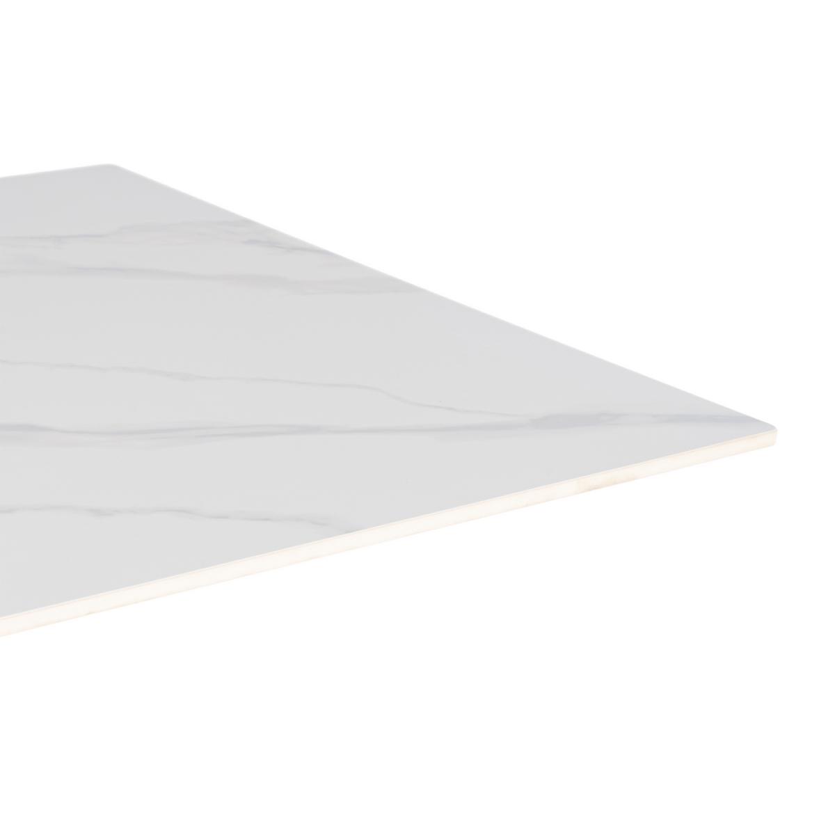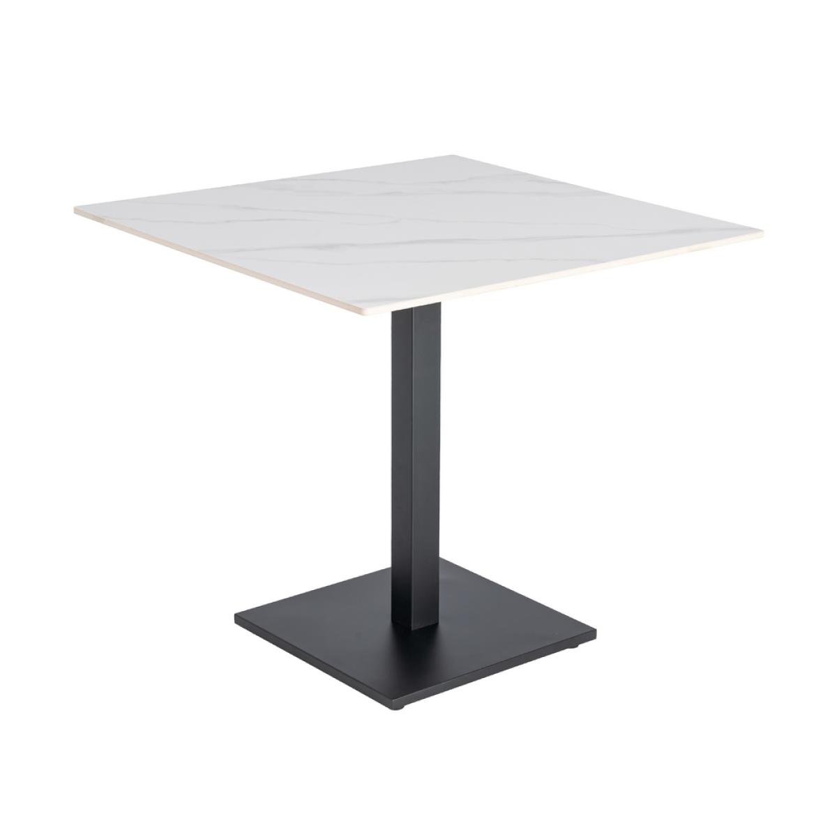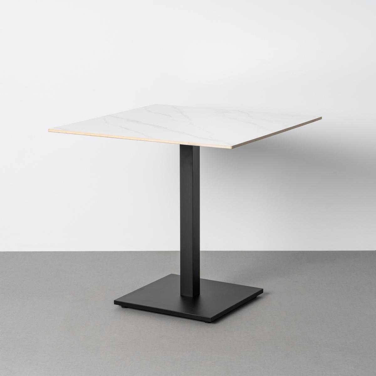 MESA BLANCO PIEDRA SINTERIZADA CONTRACT 80 X 80 X 75 CM MATERIAL SOBRE: PIEDRA SINTERIZADA, IMITACIÓN MARMOL CALACATTA GROSOR TABLERO: 11MM. ESTRUCTURA Y PATAS DE HIERRO. PRECISA MONTAJE. APTA CANAL HORECA.