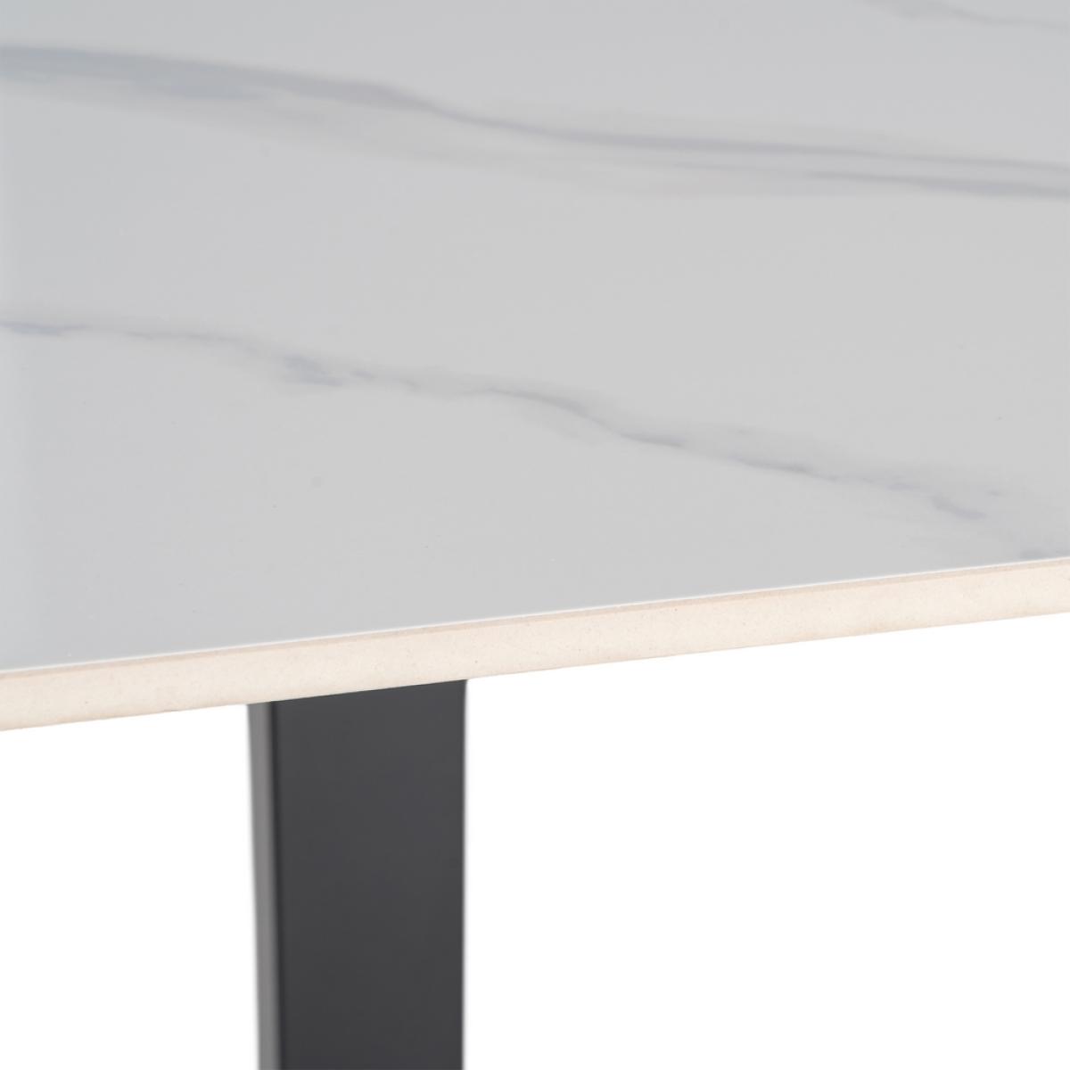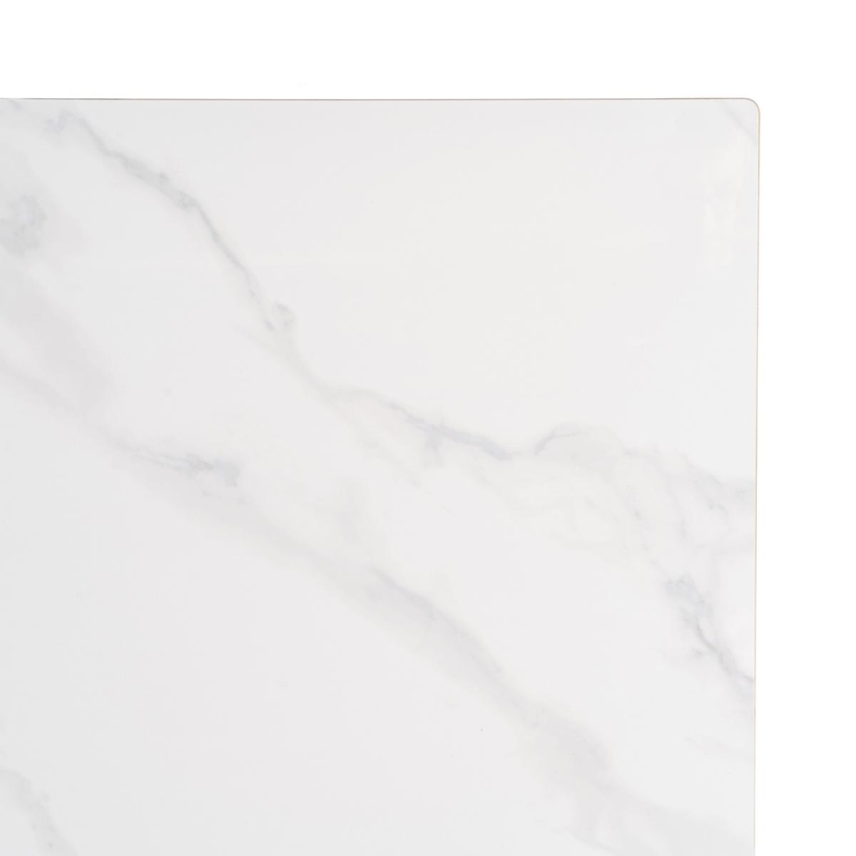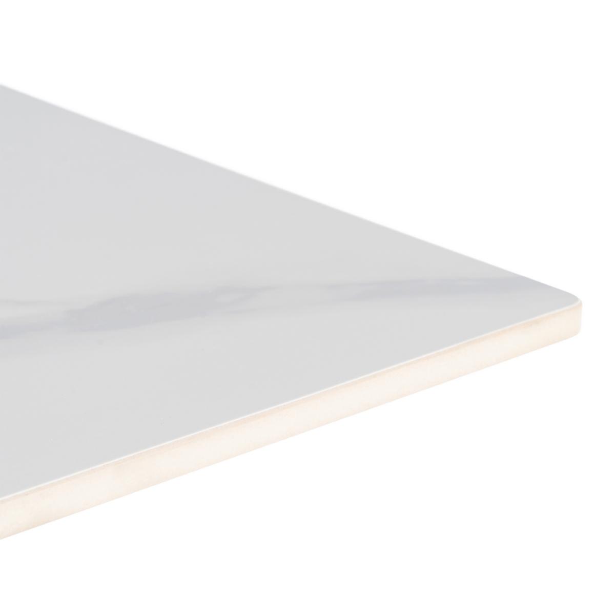 MESA BLANCO PIEDRA SINTERIZADA CONTRACT 80 X 80 X 75 CM MATERIAL SOBRE: PIEDRA SINTERIZADA, IMITACIÓN MARMOL CALACATTA GROSOR TABLERO: 11MM. ESTRUCTURA Y PATAS DE HIERRO. PRECISA MONTAJE. APTA CANAL HORECA.