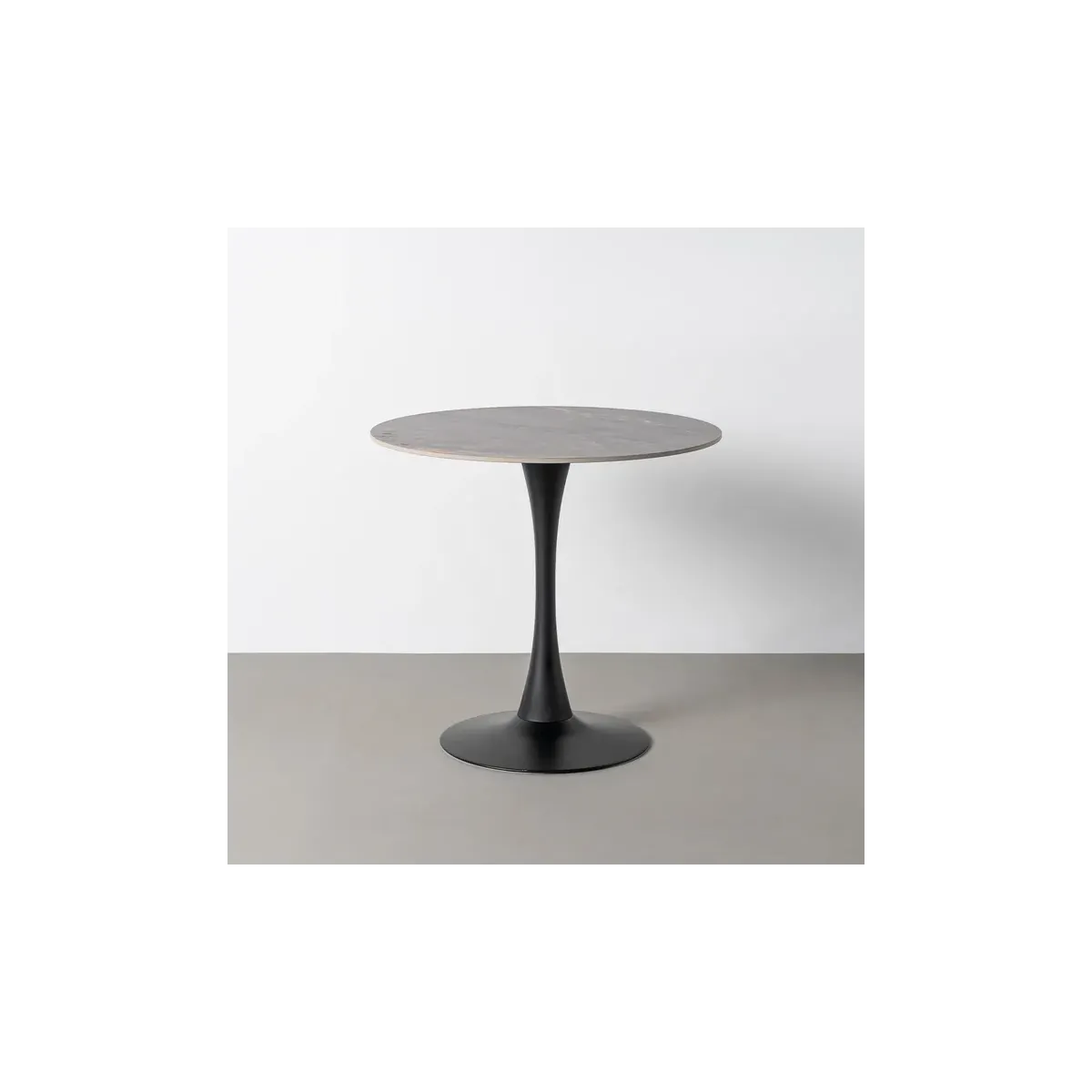 MUEBLE - MESAS 616576 - MESA REDONDA GRIS PIEDRA SINTERIZADA 80 X 80 X 75 CM