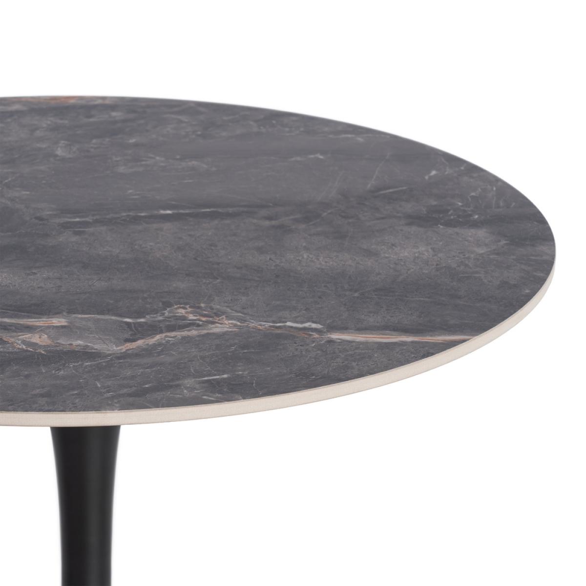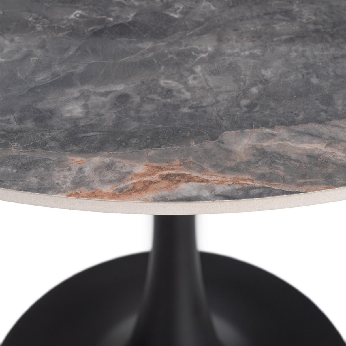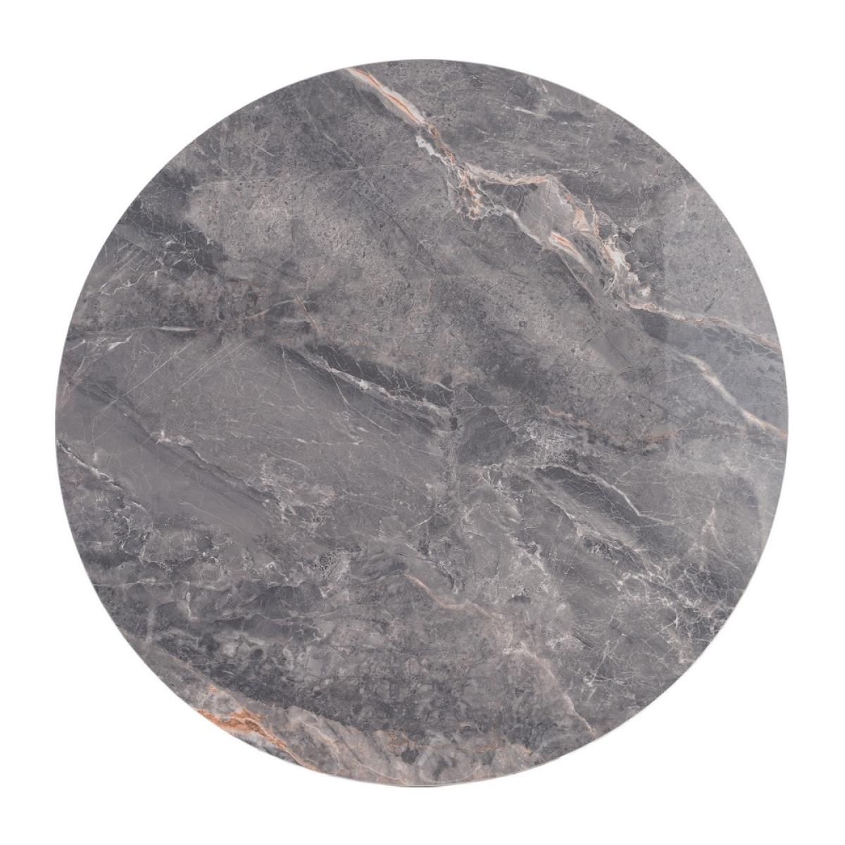 MESA REDONDA GRIS PIEDRA SINTERIZADA 80 X 80 X 75 CM MATERIAL SOBRE: PIEDRA SINTERIZADA, IMITACIÓN MARMOL MARQUINA. GROSOR TABLERO: 11MM. ESTRUCTURA Y PATAS DE HIERRO. PRECISA MONTAJE. APTA CANAL HORECA.