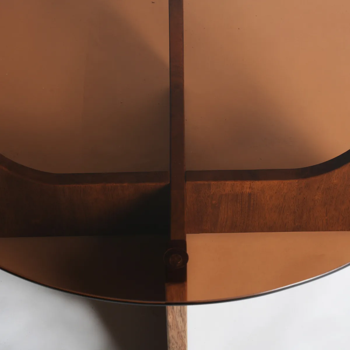 Mesa de centro Lubeca de estilo contemporáneo, fabricado en madera de caucho en color marrón, combinado con cristal en color marrón con acabado templado.