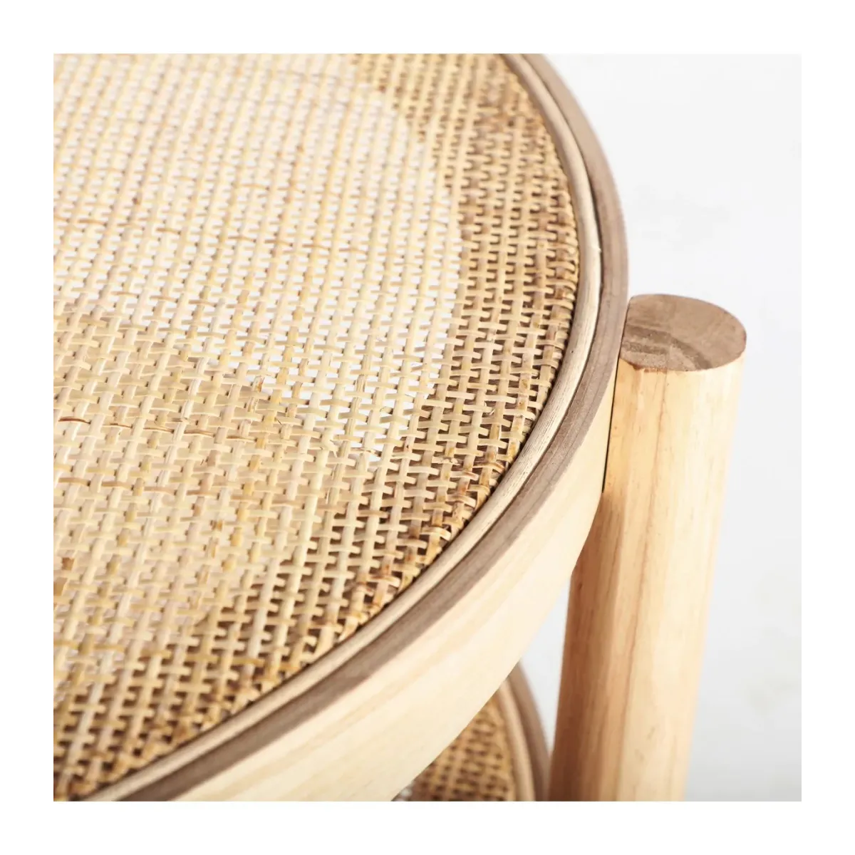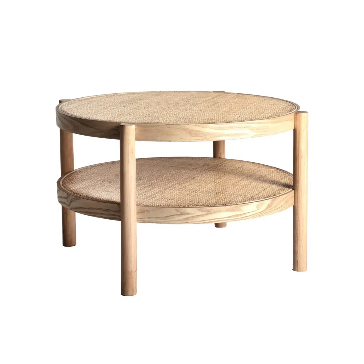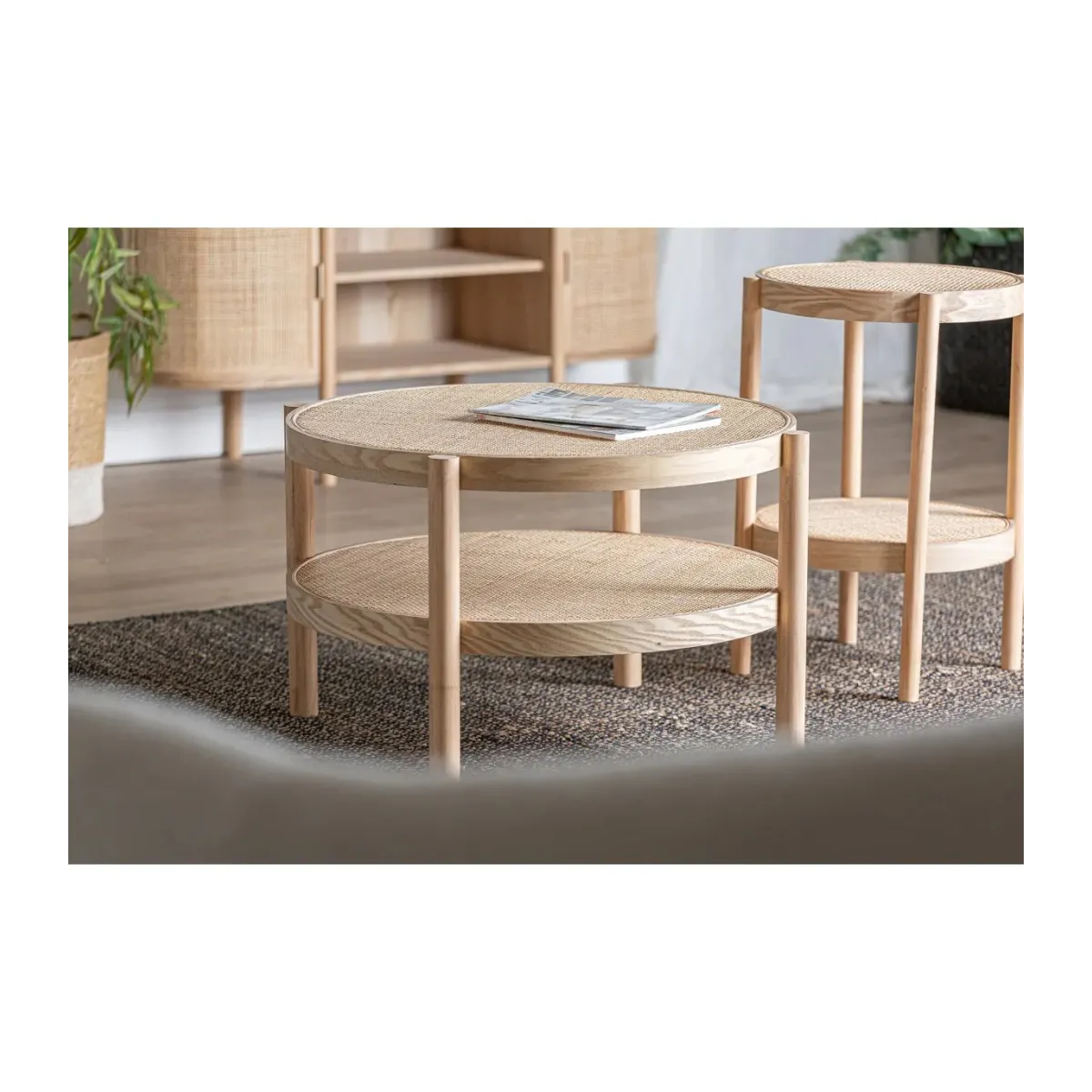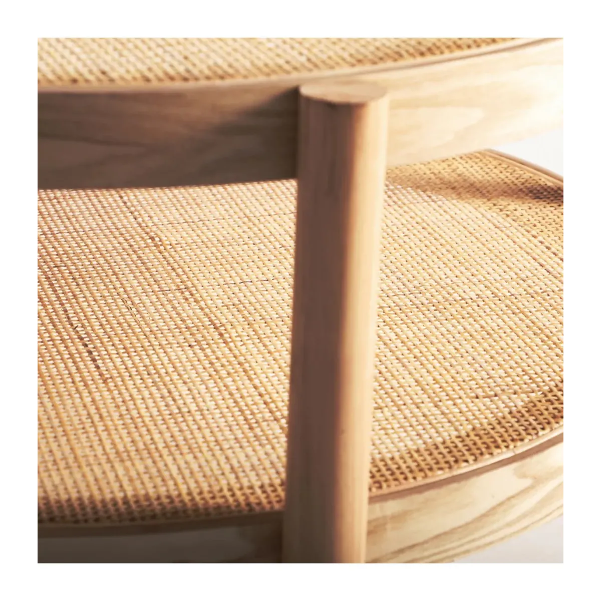 Mesa de centro ikla, en color natural, de estilo nórdico. Fabricado en madera de fresno, combinado con ratán. Producto desmontable.