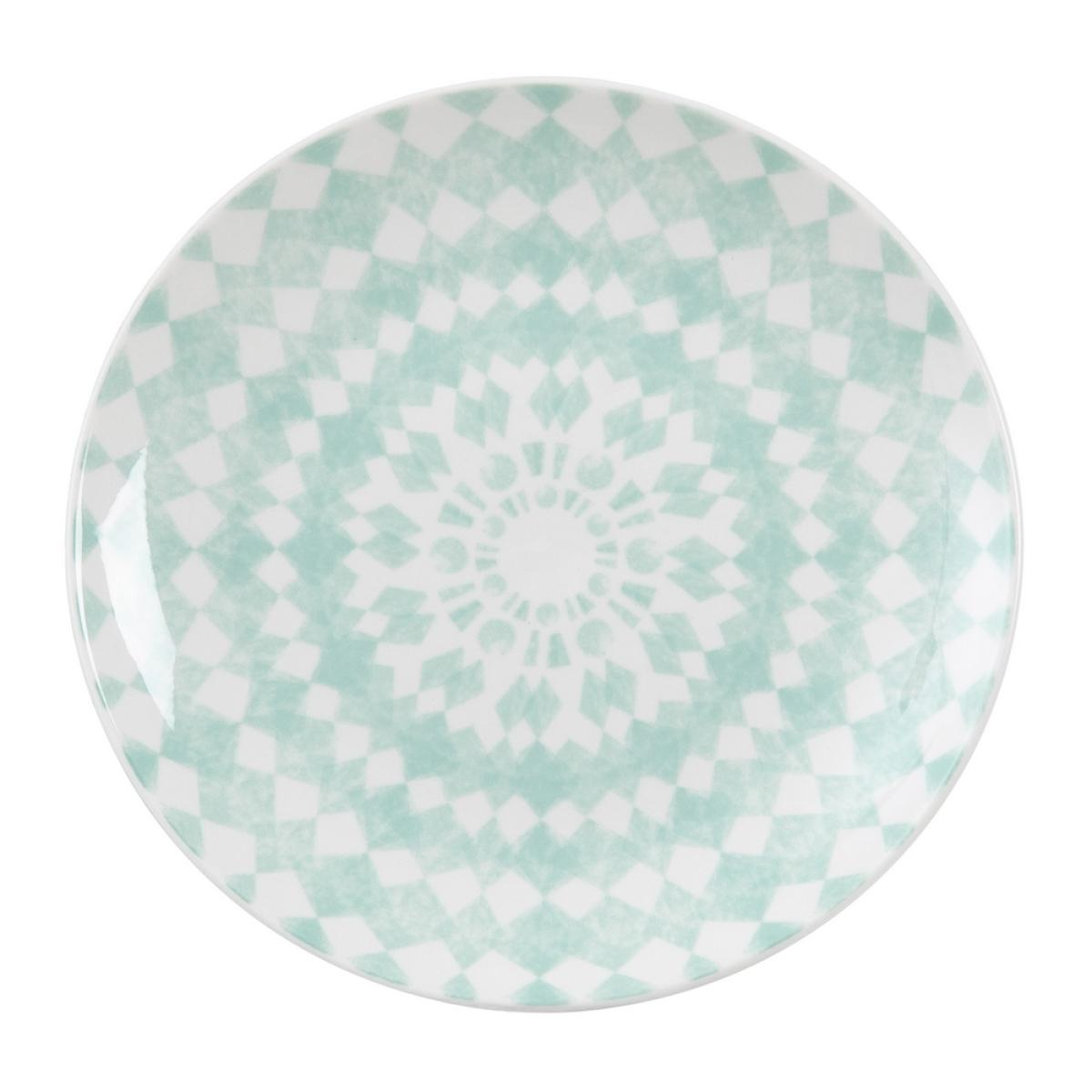 PLATO POSTRE TURQUESA-BLANCO PORCELANA 19,50 X 19,50 X 2 CM Material: porcelana. Apto para lavavajillas y microondas. No apto para canal HORECA.
