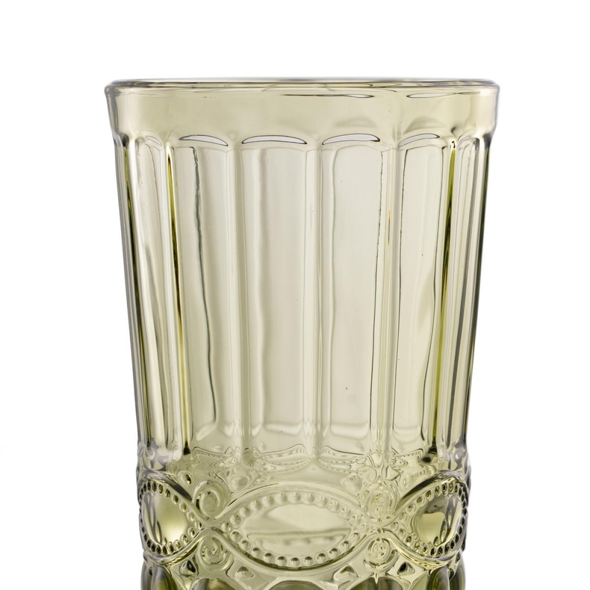 VASO VERDE CRISTAL DECORACIÓN 8 X 8 X 12,50 CM Cristal tipo soda-lime. Peso:334gr. Capacidad:345ml. APTO PARA LAVAVAJILLAS. NO APTO PARA MICROONDAS.