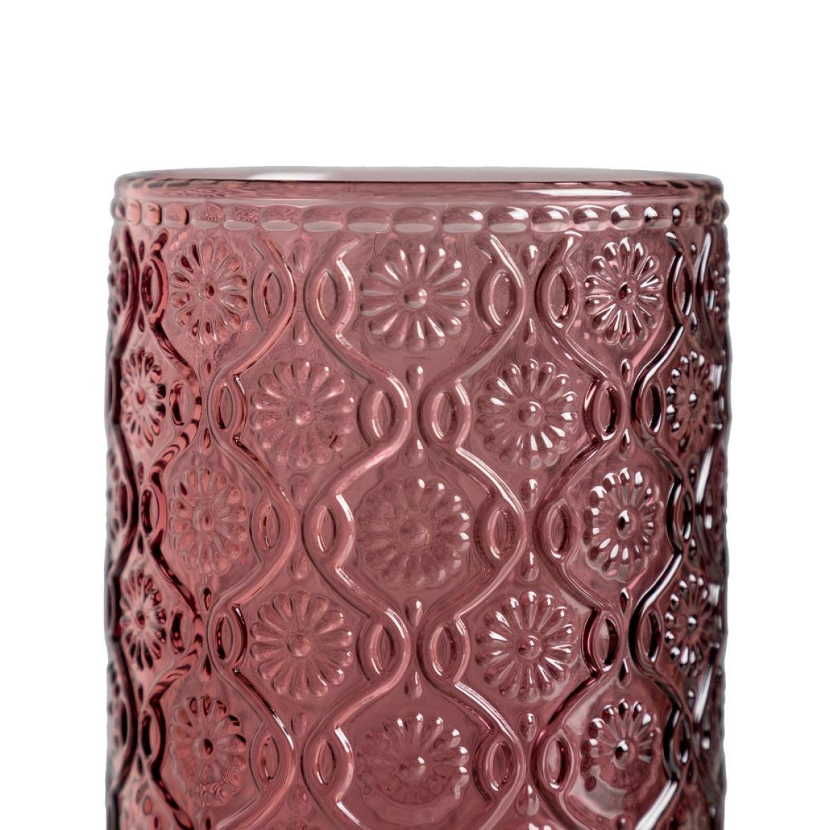 VASO ROSA CRISTAL DECORACIÓN 8 X 8 X 12,70 CM Cristal tipo soda-lime. Peso:410gr. Capacidad:400ml. APTO PARA LAVAVAJILLAS. NO APTO PARA MICROONDAS.
