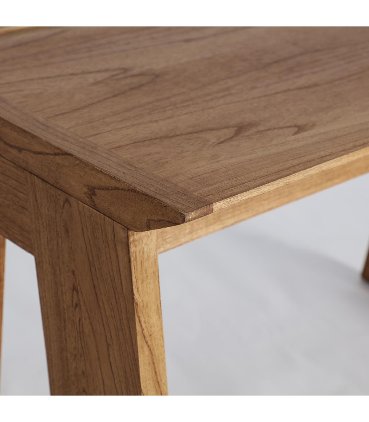 Escritorio Mito de estilo nórdico, fabricado en madera mindi en color marrón. Producto desmontable.