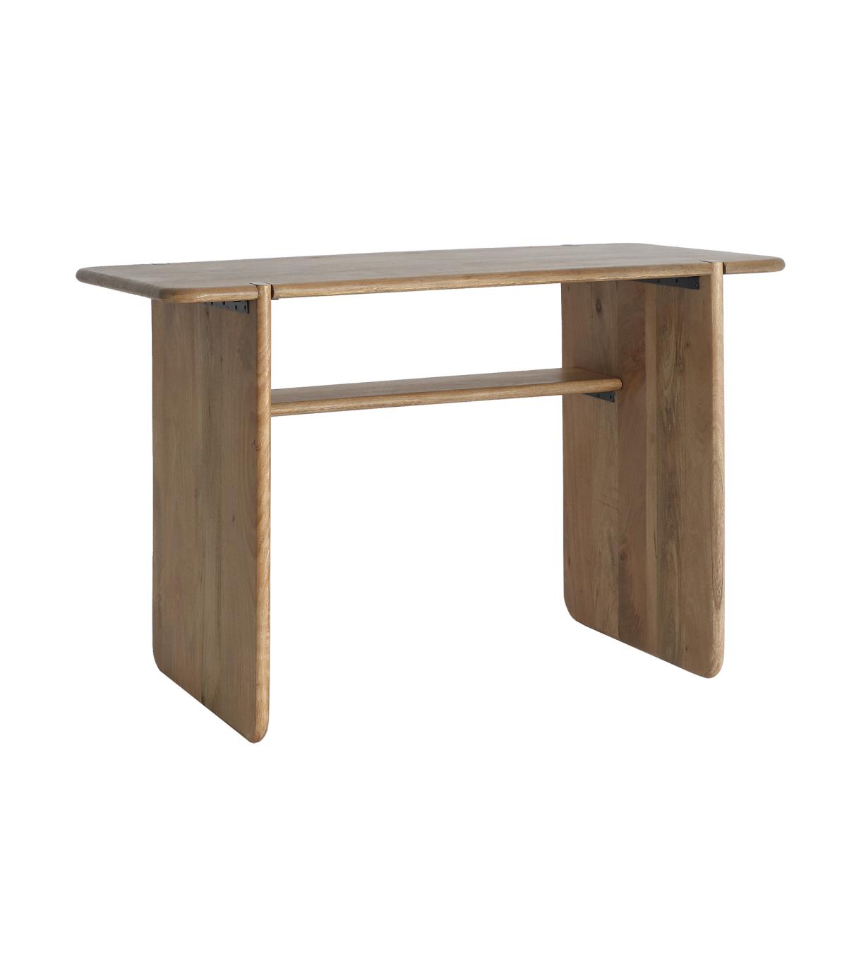 Escritorio Gaillac de estilo nórdico, fabricado en madera de mango en color marrón claro. Producto desmontable.