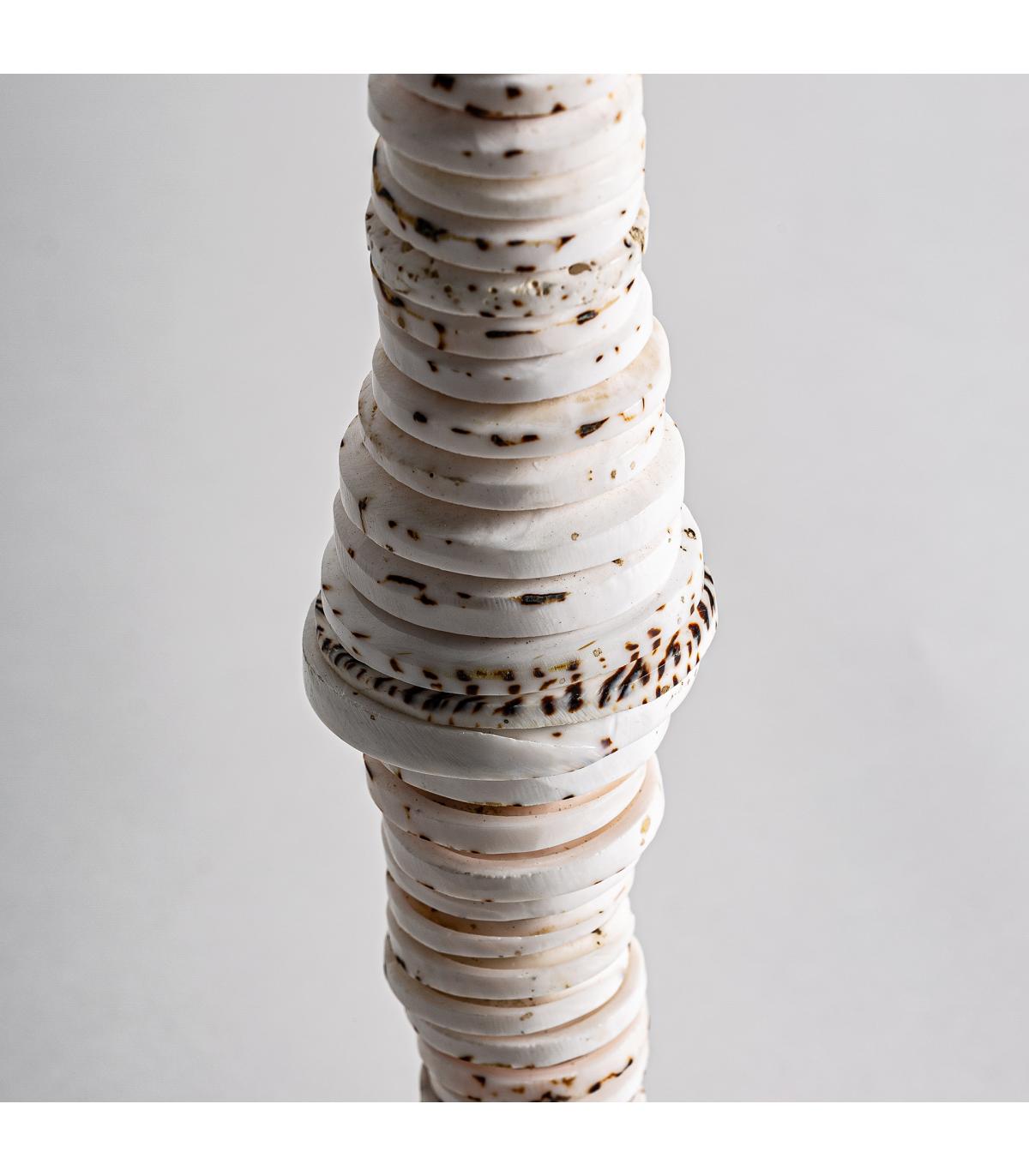 Figura decorativa de estilo étnico fabricado en hierro en color negro combinado con concha en color blanco roto.