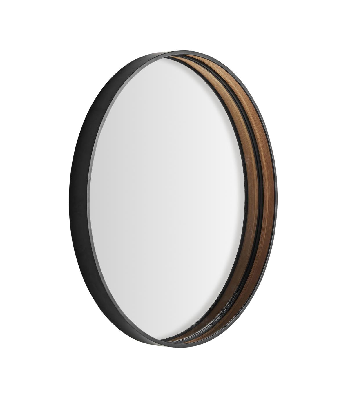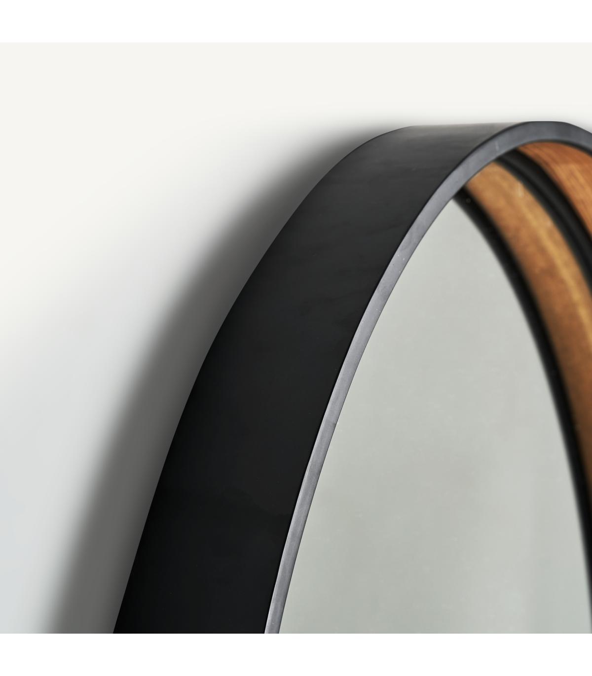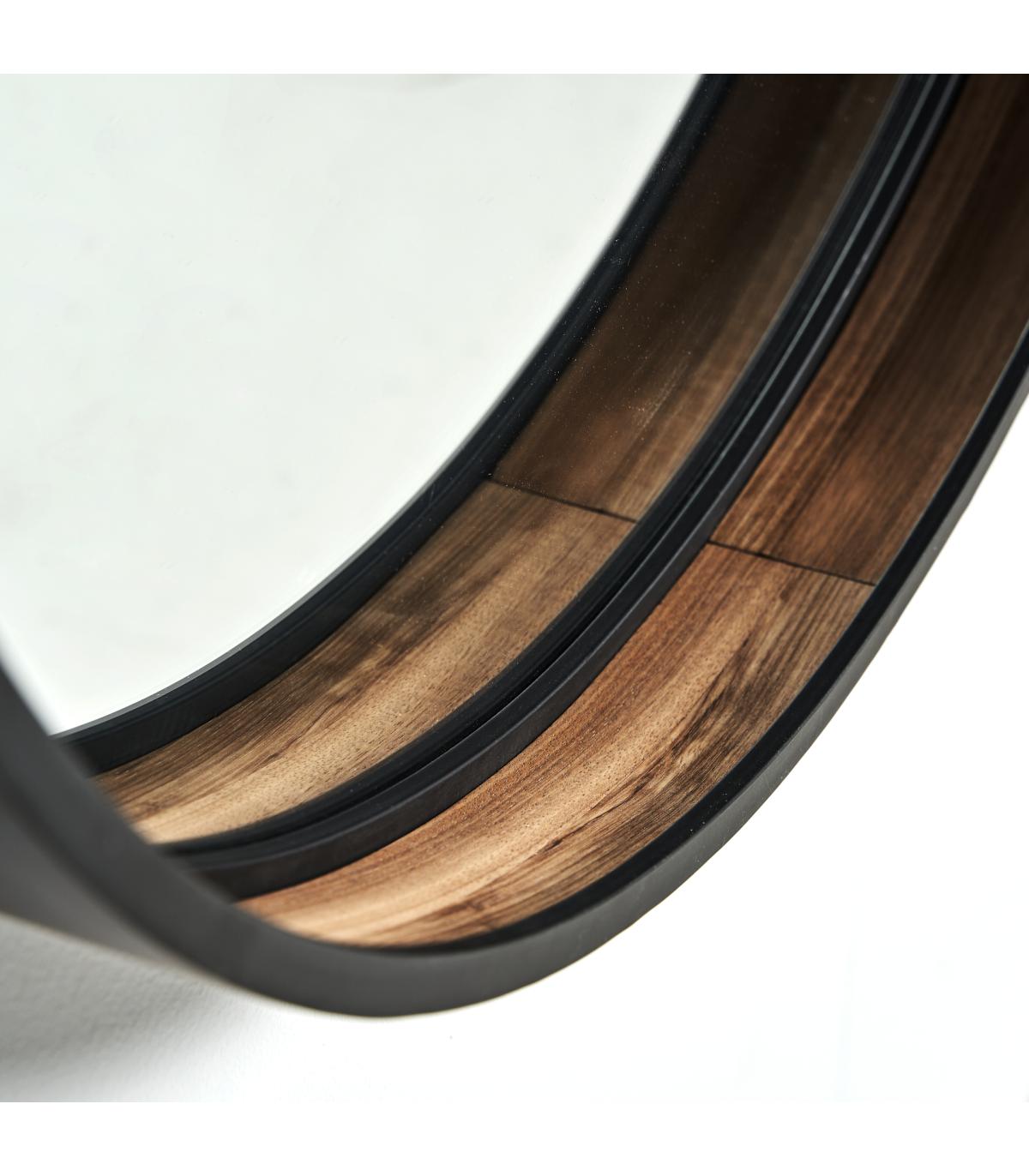 Espejo aimar de estilo art deco fabricado en espejo combinado con hierro en color negro y madera dm.