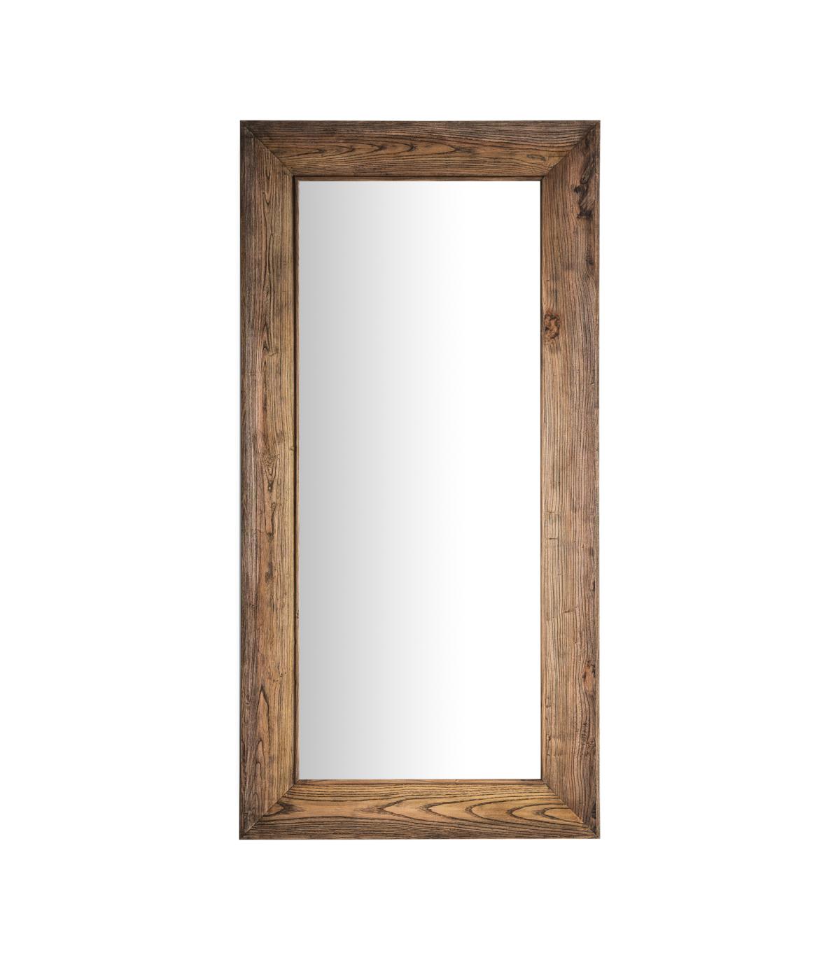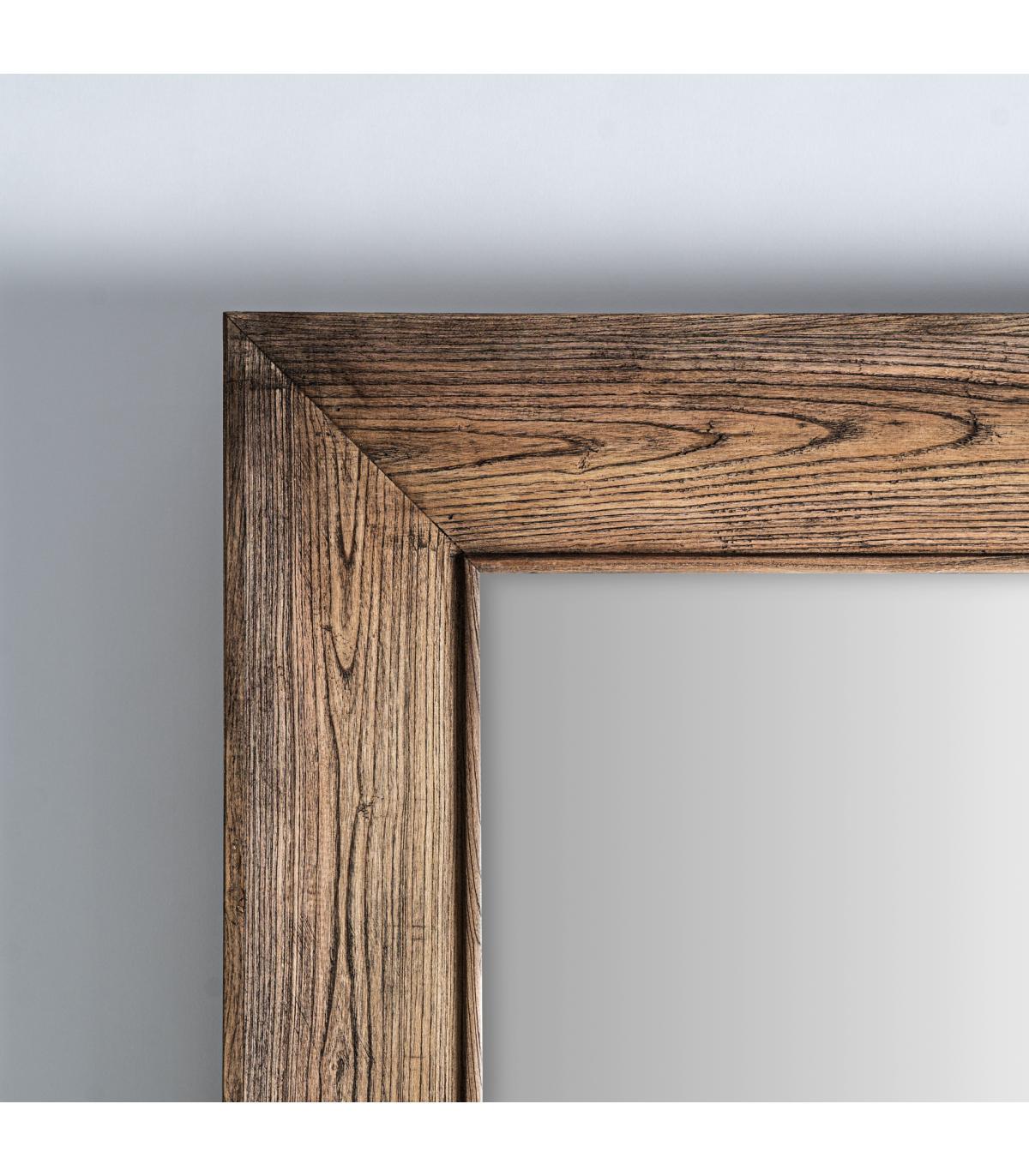 Espejo Norvik de estilo contemporáneo fabricado en madera de olmo en color marrón combinado con espejo.