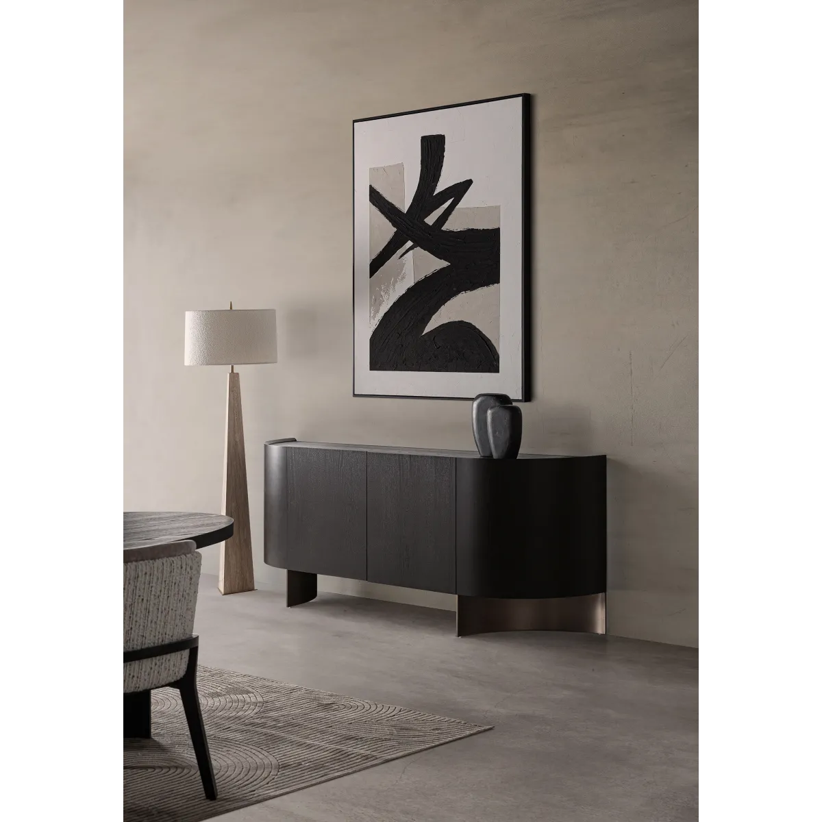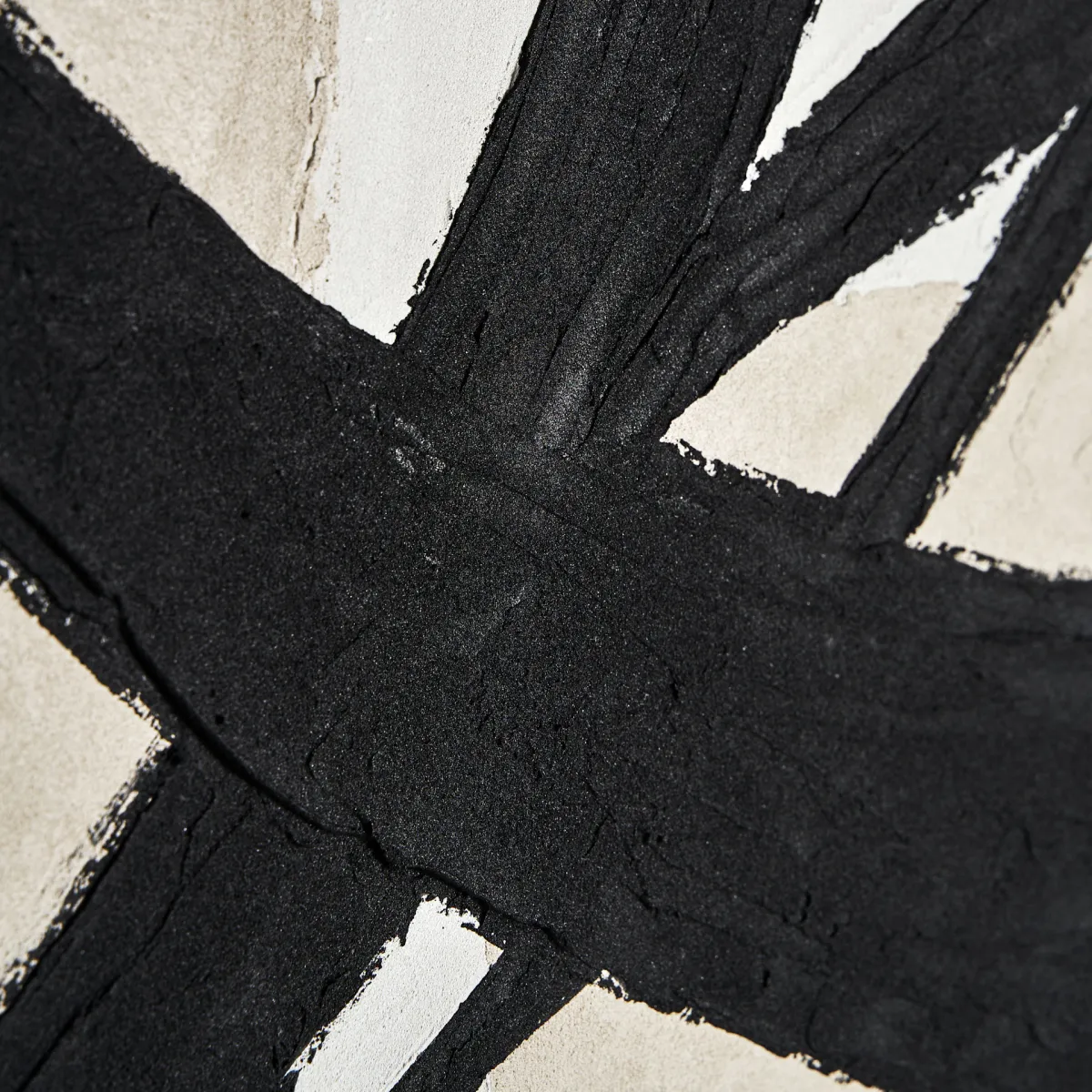 Cuadro uziel de estilo contemporáneo. Fabricado en lienzo en color negro al óleo combinado con madera de pino en color blanco.