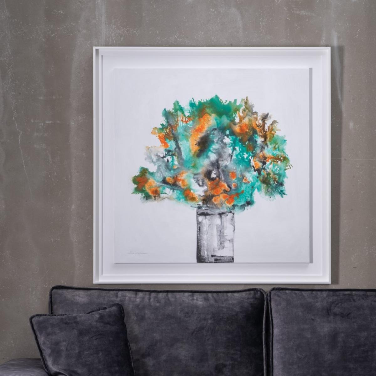 CUADRO PINTURA JARRÓN LIENZO DECORACIÓN 113 X 113 CM Material marco: madera de ayous. Pintado a mano. Pintura acrílica.