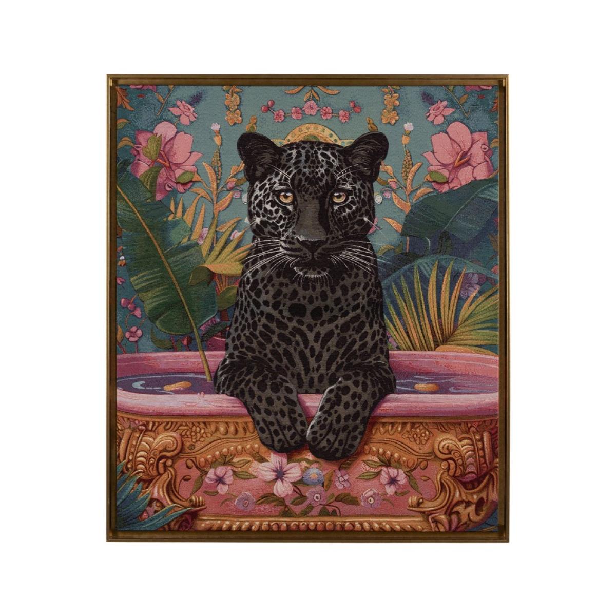 CUADRO LEOPARDO-PANTERA 2/M TEJIDO 85 X 100 CM Material: madera de ayous, tejido. No incluye sistema de sujeción.