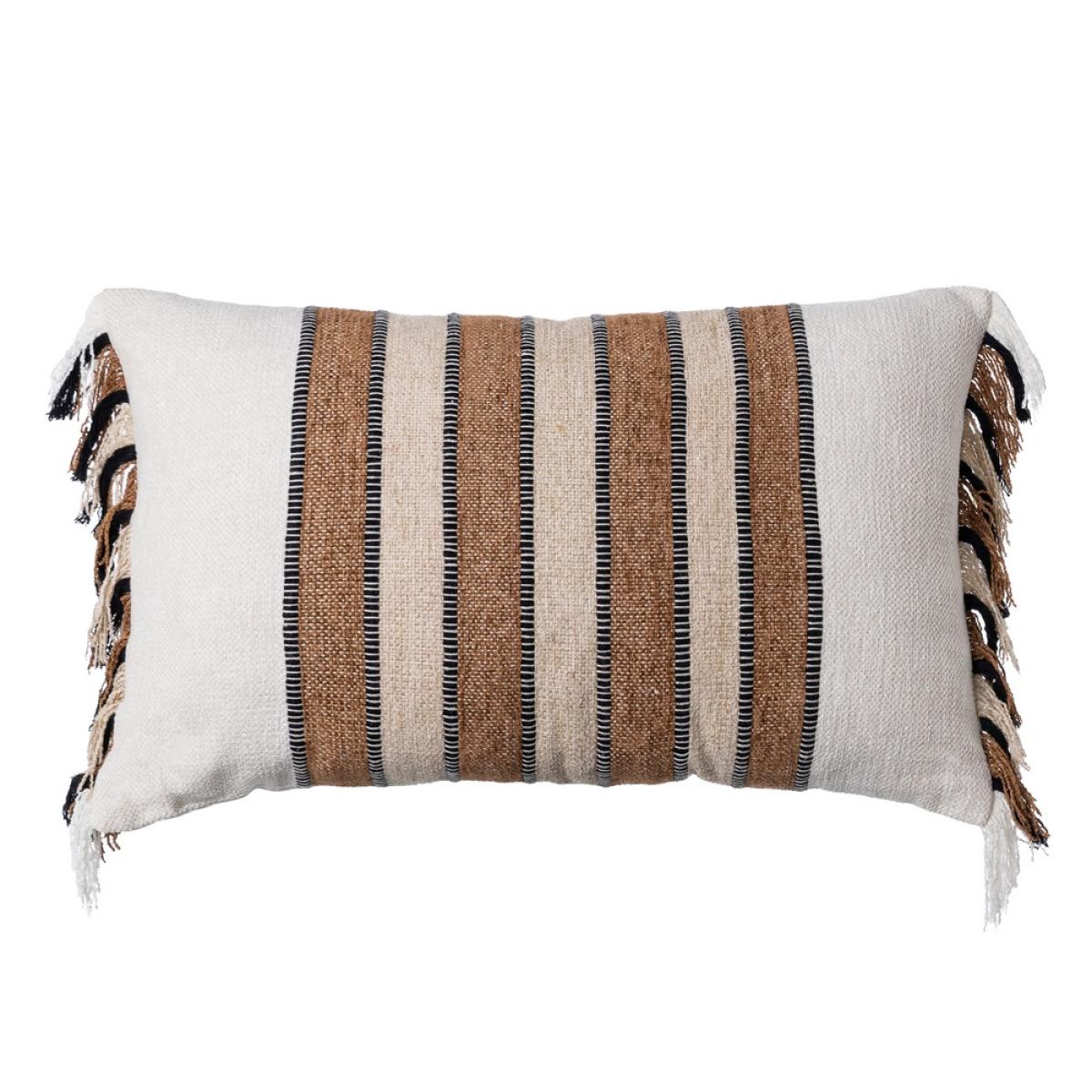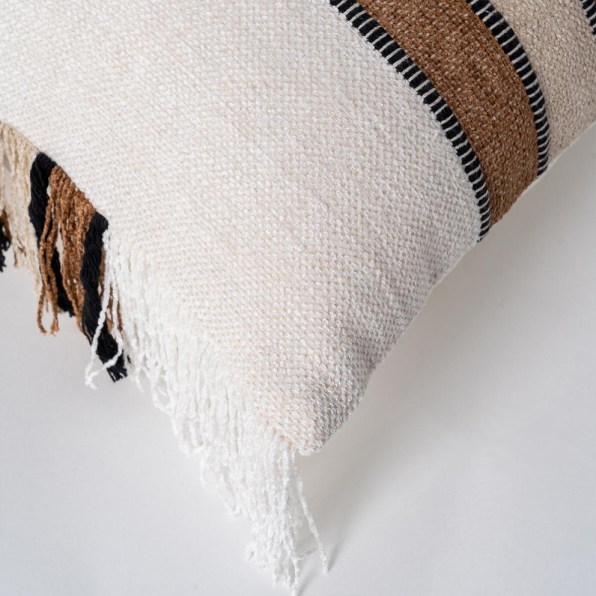 COJÍN BLANCO-OCRE ALGODÓN/TERCIOPELO 30 X 50 CM COJÍN 50% ALGODÓN-50% TERCIOPELO. GRAMAJE: 250 GR./M2 RELLENO: POLIÉSTER 350GR. ENVASADO AL VACÍO. SOLO LAVADO EN SECO. PLANCHAR TEMPERATURA SUAVE DESENFUNDABLE CON CREMALLERA.
