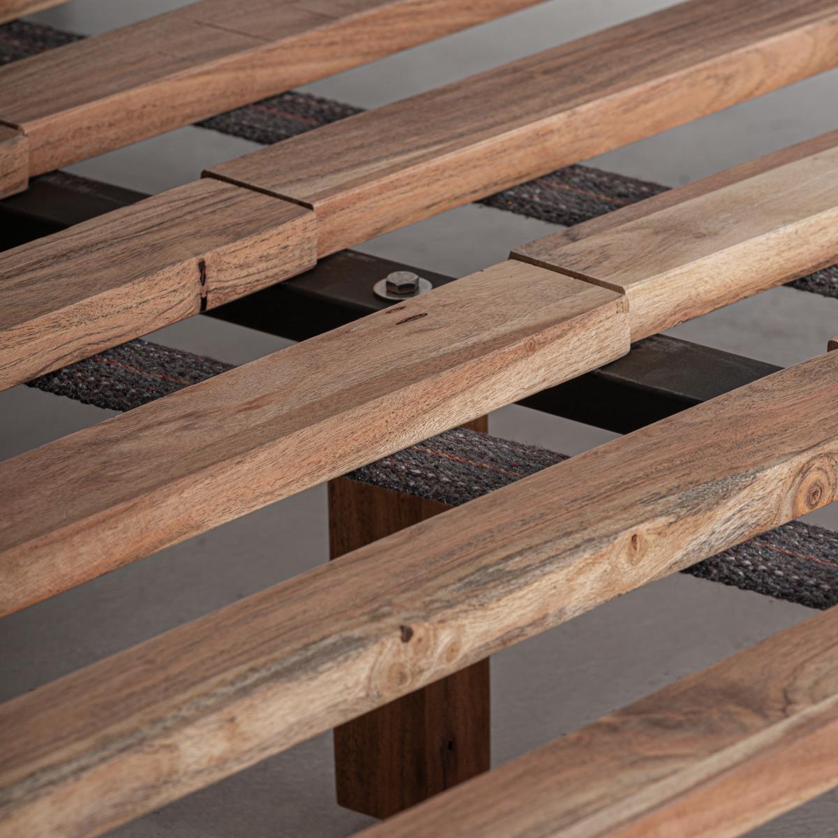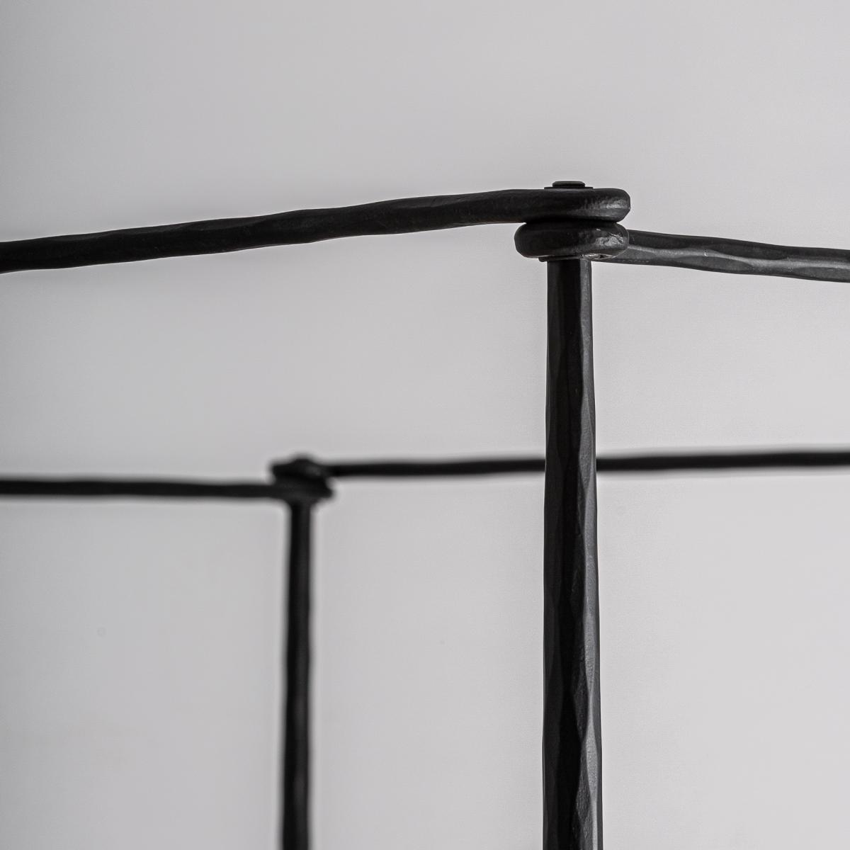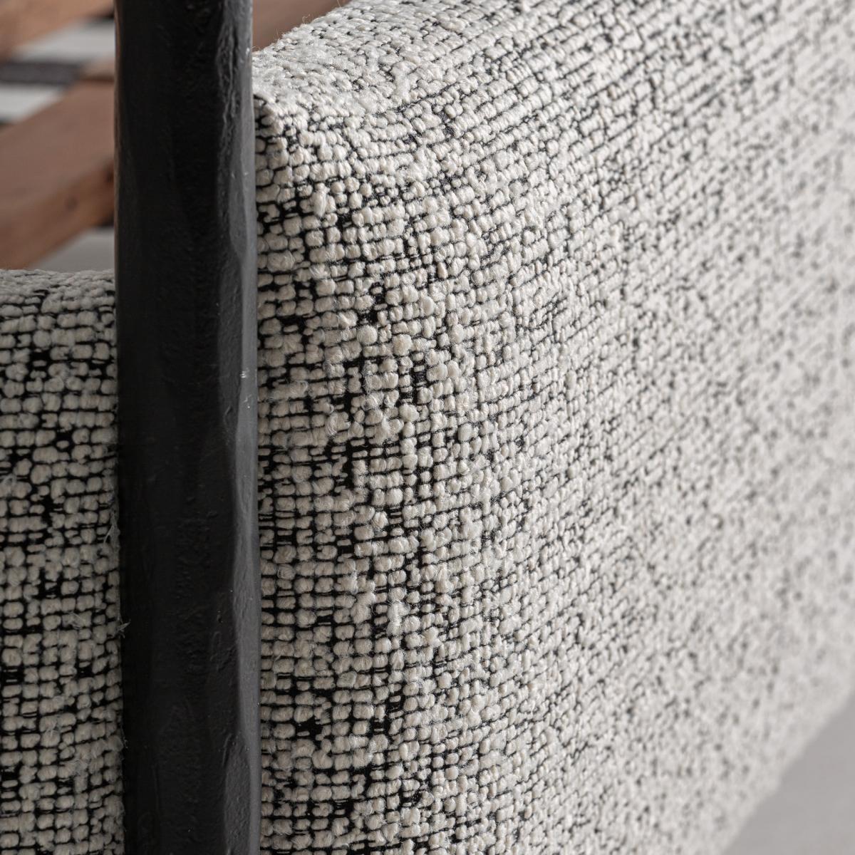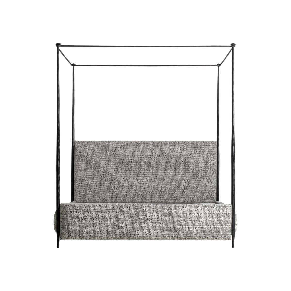 Cama fabricado en hierro en color negro combinado con algodón en color beige.