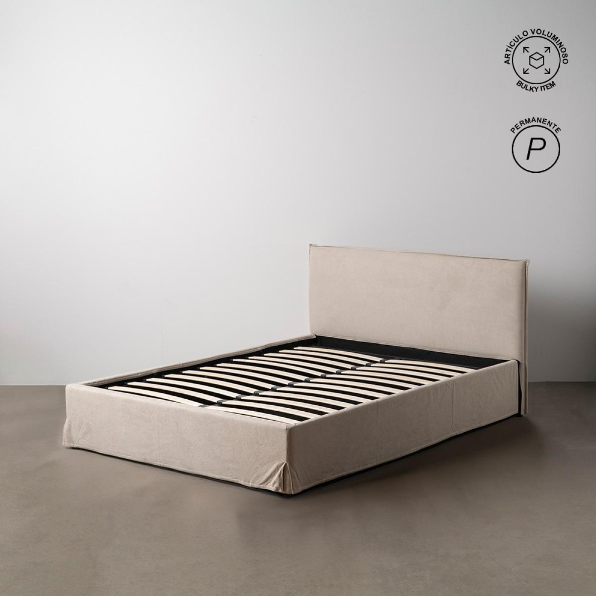 MUEBLE - CAMAS Y CABECEROS 613734 - CAMA CANAPÉ BEIGE TEJIDO DORMITORIO 166 X 215 X 96 CM