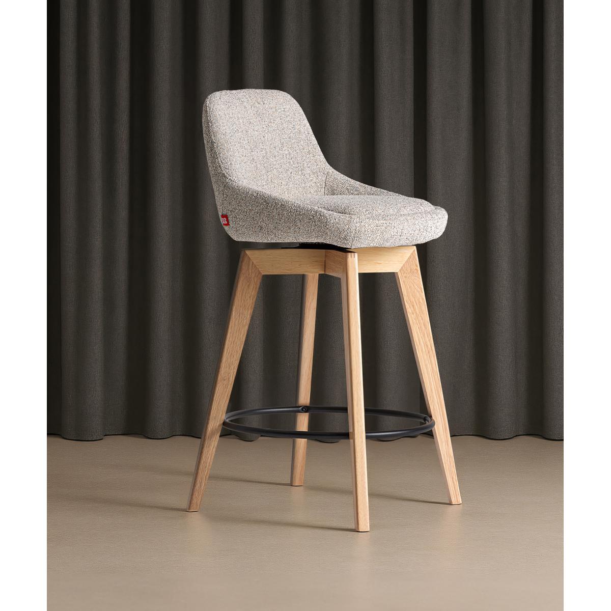 Taburete, fabricado en madera de caucho en color marrón, combinado con acero en color negro y poliéster en color beige.