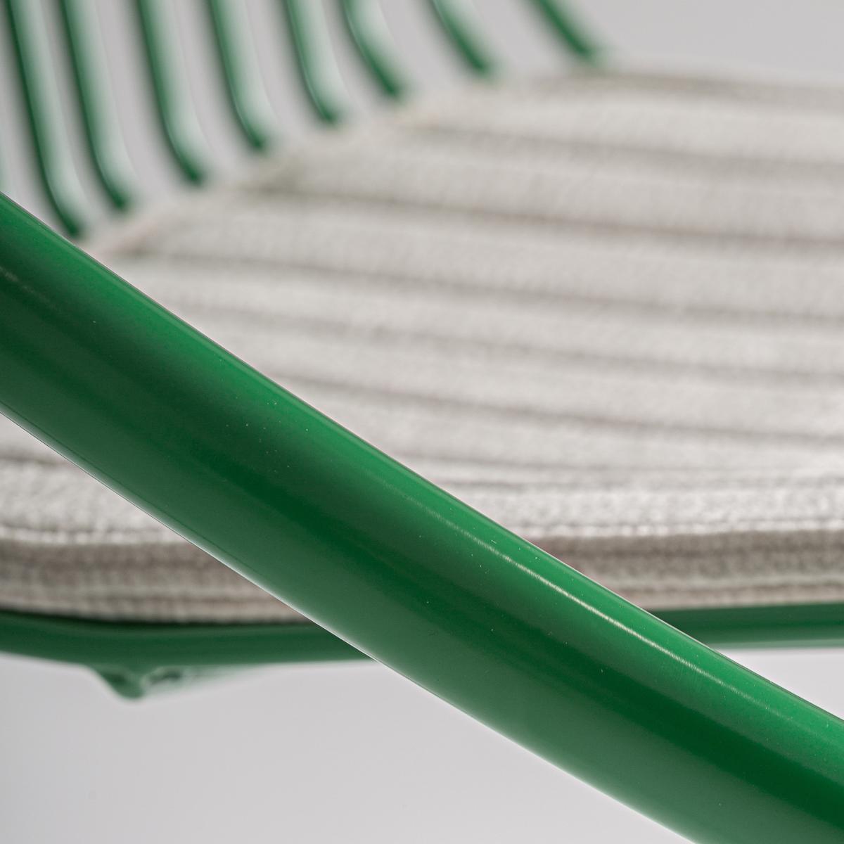 Taburete Brienz de estilo contemporáneo, fabricado en hierro en color verde, combinado con poliéster en color gris. Producto desmontable.