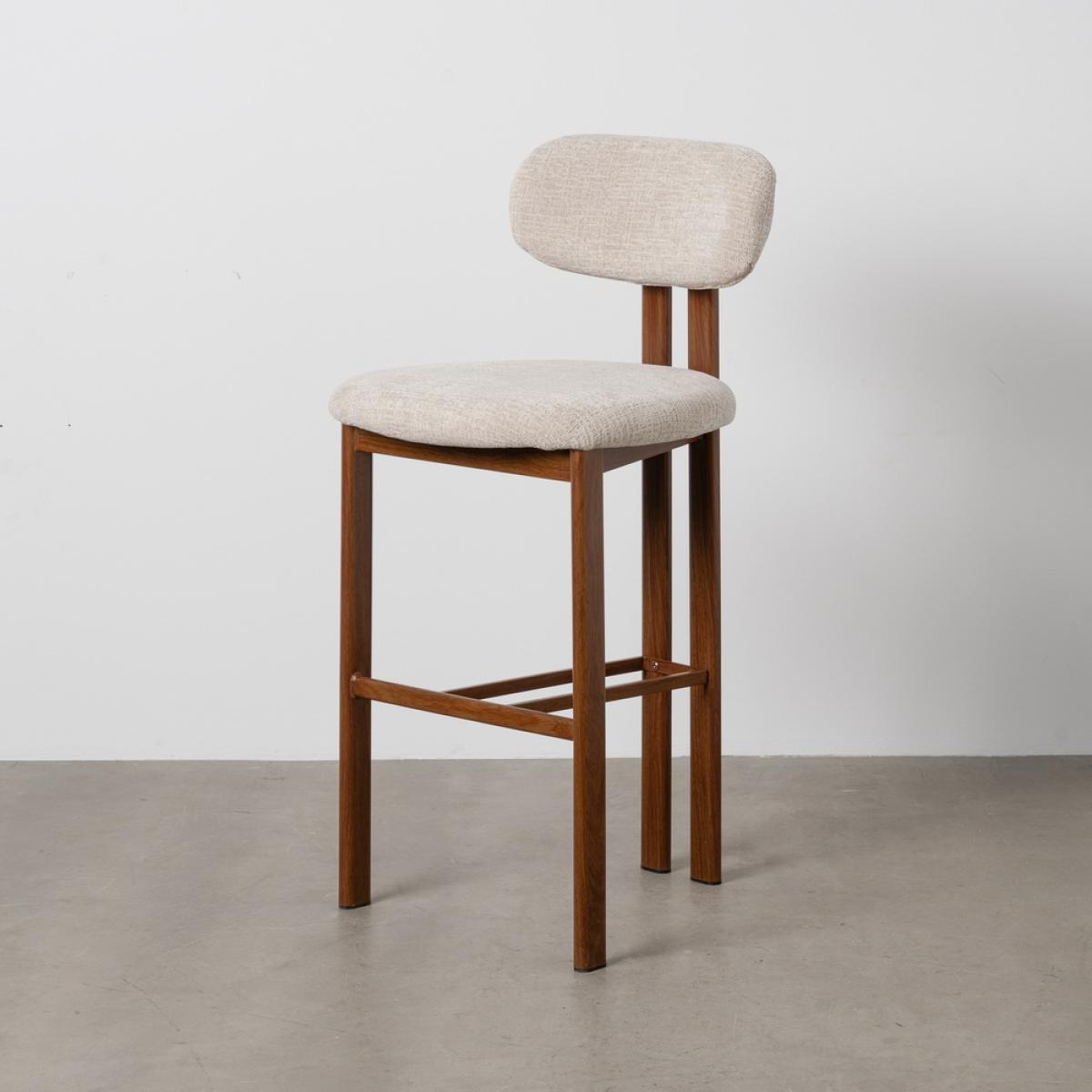 TABURETE 75CM BEIGE TEJIDO-METAL 50 X 47 X 109 CM Material: tejido 100% poliéster - metal (acero) Tejido repelente al agua. Altura asiento: 75cm. Altura respaldo: 35cm. Ancho asiento: 50cm. Precisa montaje. No apilable. Cumple normativa: EN16139:2013