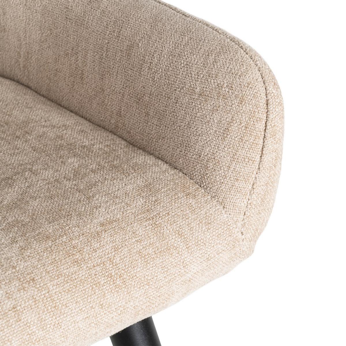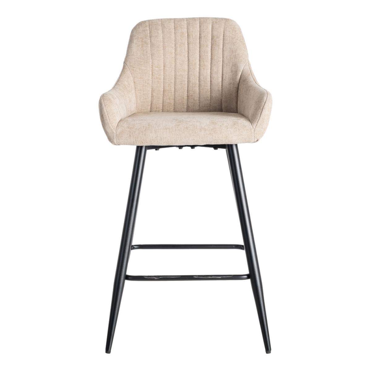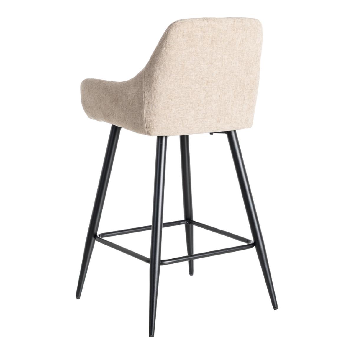 TABURETE BEIGE TEJIDO-METAL SALÓN 47 X 47 X 93 CM Material: tejido, metal. Altura asiento: 65cm. Ancho asiento: 36cm. Profundidad asiento: 35cm. Altura respaldo: 30cm. Altura reposabrazos: 10cm (75cm desde el suelo). No apilable. Cuample la normativa EN16139 (catering).