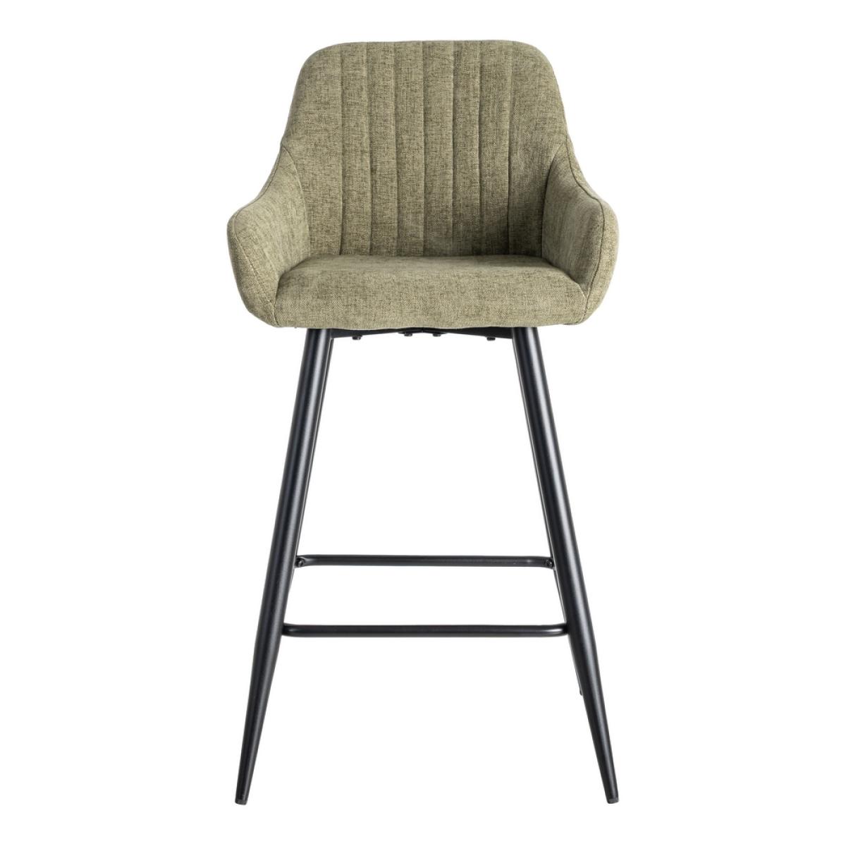 TABURETE VERDE TEJIDO-METAL SALÓN 47 X 47 X 93 CM Material: tejido, metal. Altura asiento: 65cm. Ancho asiento: 36cm. Profundidad asiento: 35cm. Altura respaldo: 30cm. Altura reposabrazos: 10cm (75cm desde el suelo). No apilable. Cuample la normativa EN16139 (catering).