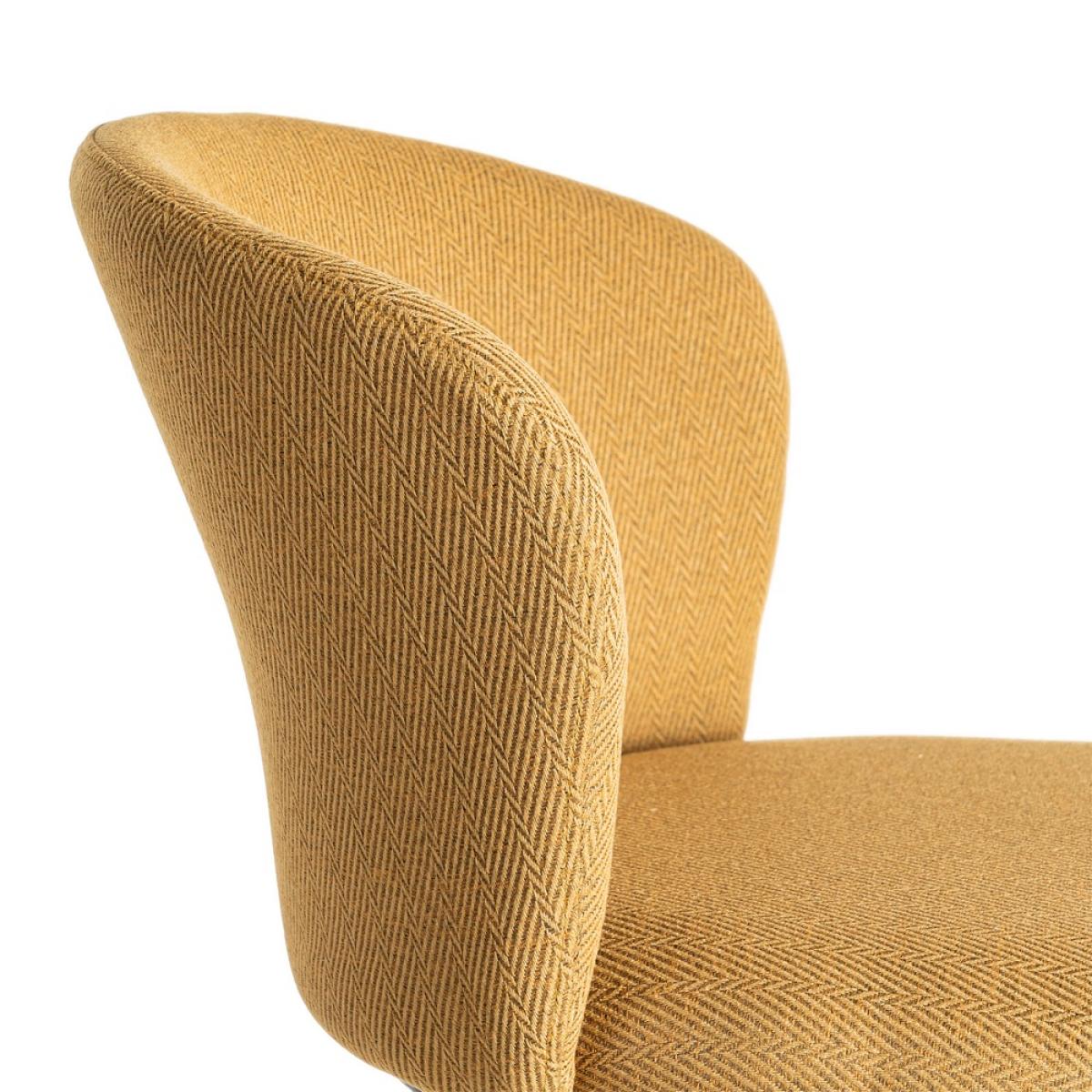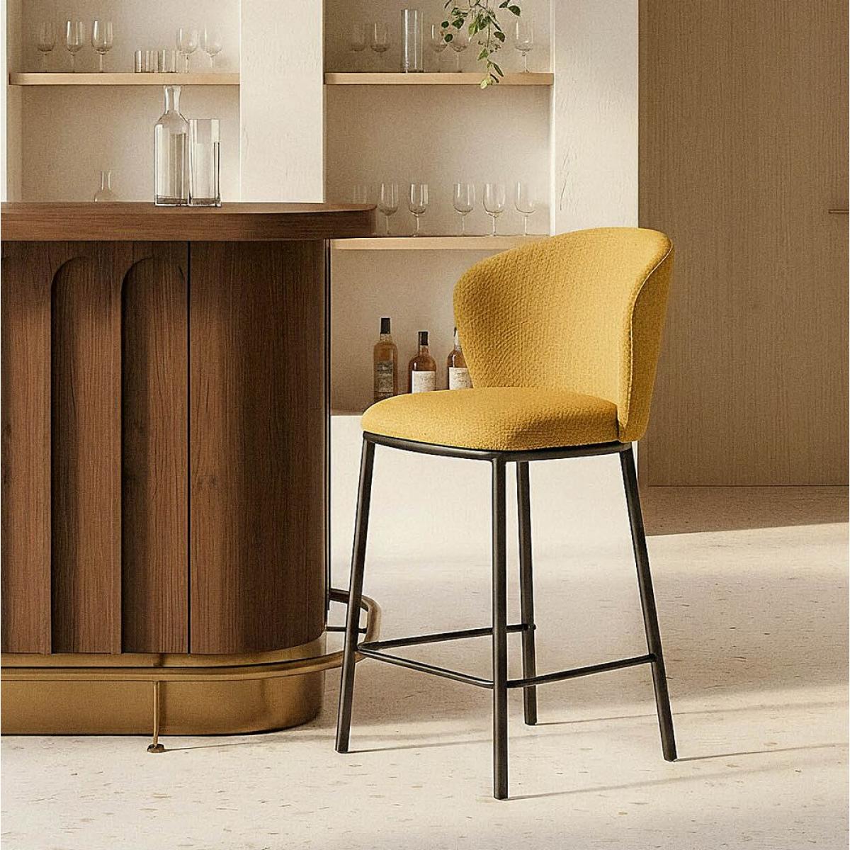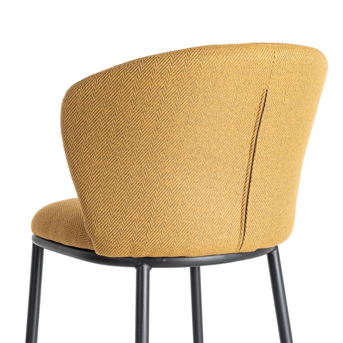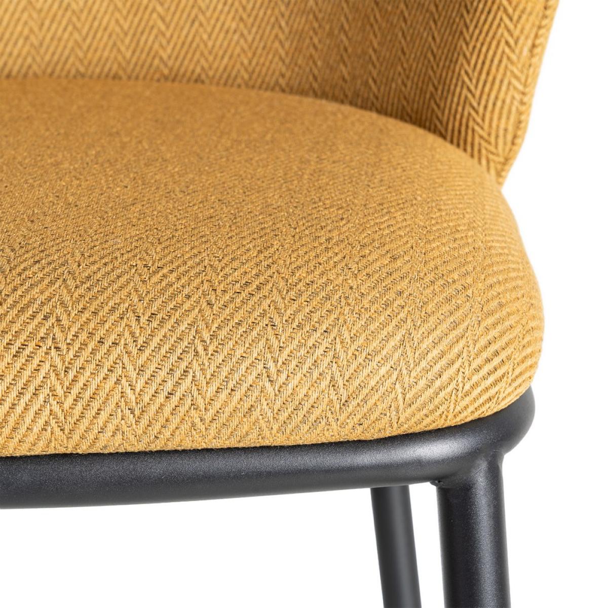 TABURETE ESPIGA MOSTAZA TEJIDO-METAL 55 X 55 X 96 CM Material: tejido, metal. Altura asiento: 64cm. Ancho asiento: 45cm. Profundidad asiento: 43cm. Altura respaldo: 34cm. No apilable. Cuample la normativa EN16139 (catering).