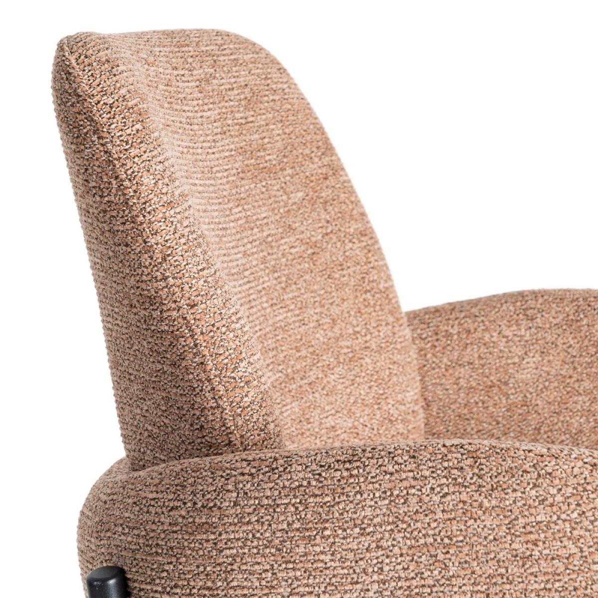 TABURETE JASPEADO ROSA TEJIDO-METAL 48,50 X 48,50 X 95 CM Material: tejido, metal. Altura asiento: 65cm. Ancho asiento: 42cm. Profundidad asiento: 37,5cm. Altura respaldo: 31cm. Altura reposabrazos: 12cm (78cm desde el suelo). No apilable. Cuample la normativa EN16139 (catering).