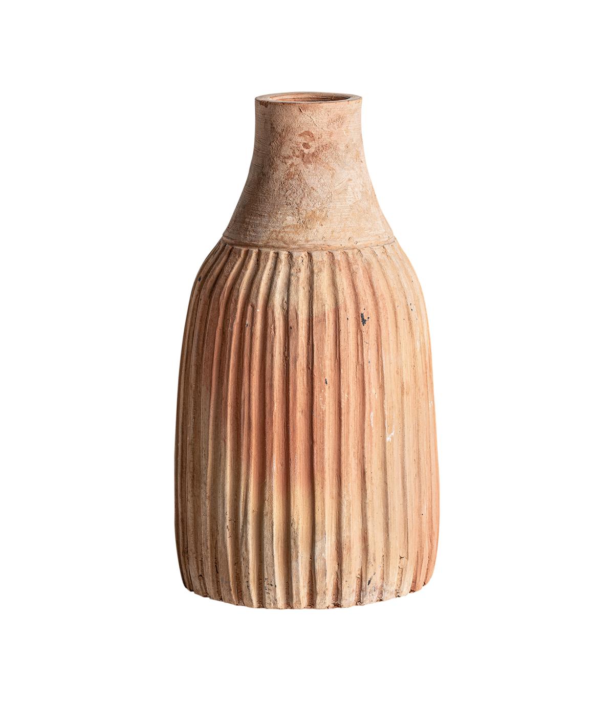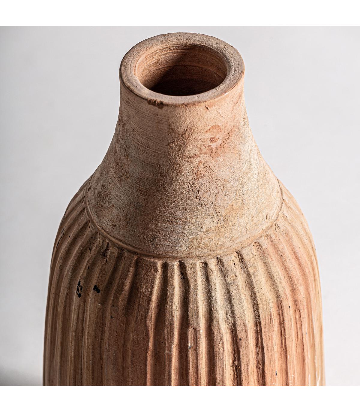 Jarrón aike de estilo contemporáneo fabricado en arcilla en color marrón claro con acabado envejecido.